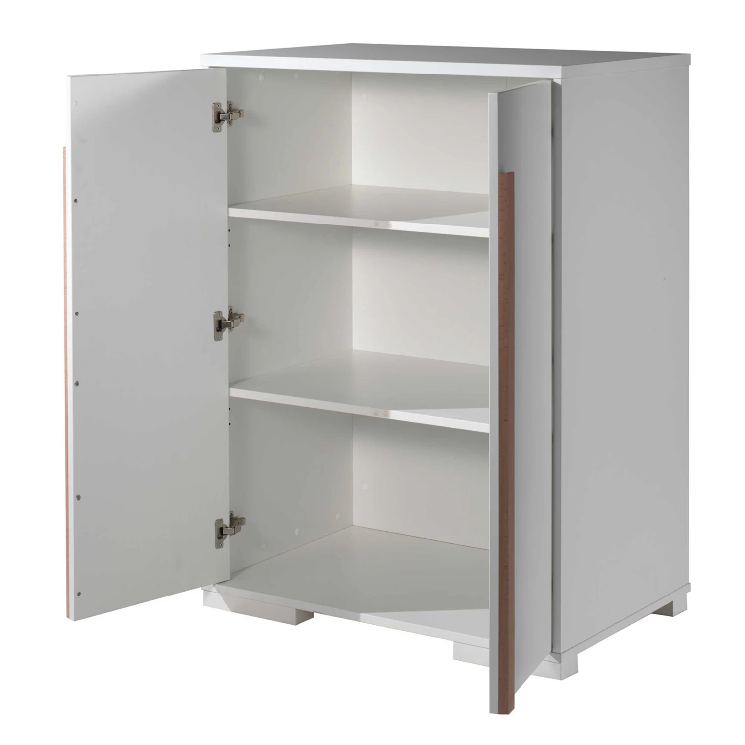 Deze stijlvolle, witte opbergkast uit de London-reeks van het merk Vipack is gemaakt van hoogwaardig spaanplaat en is erg stevig. Achter de 2 draaideuren beschik je over 2 verstelbare legplanken om kledij, speelgoed of andere spullen op te bergen. De lange, verticale handgrepen uit massief beukenhout maken het makkelijk om de kast te openen en sluiten en zorgen voor een warme toets.