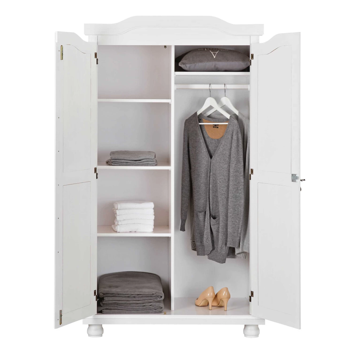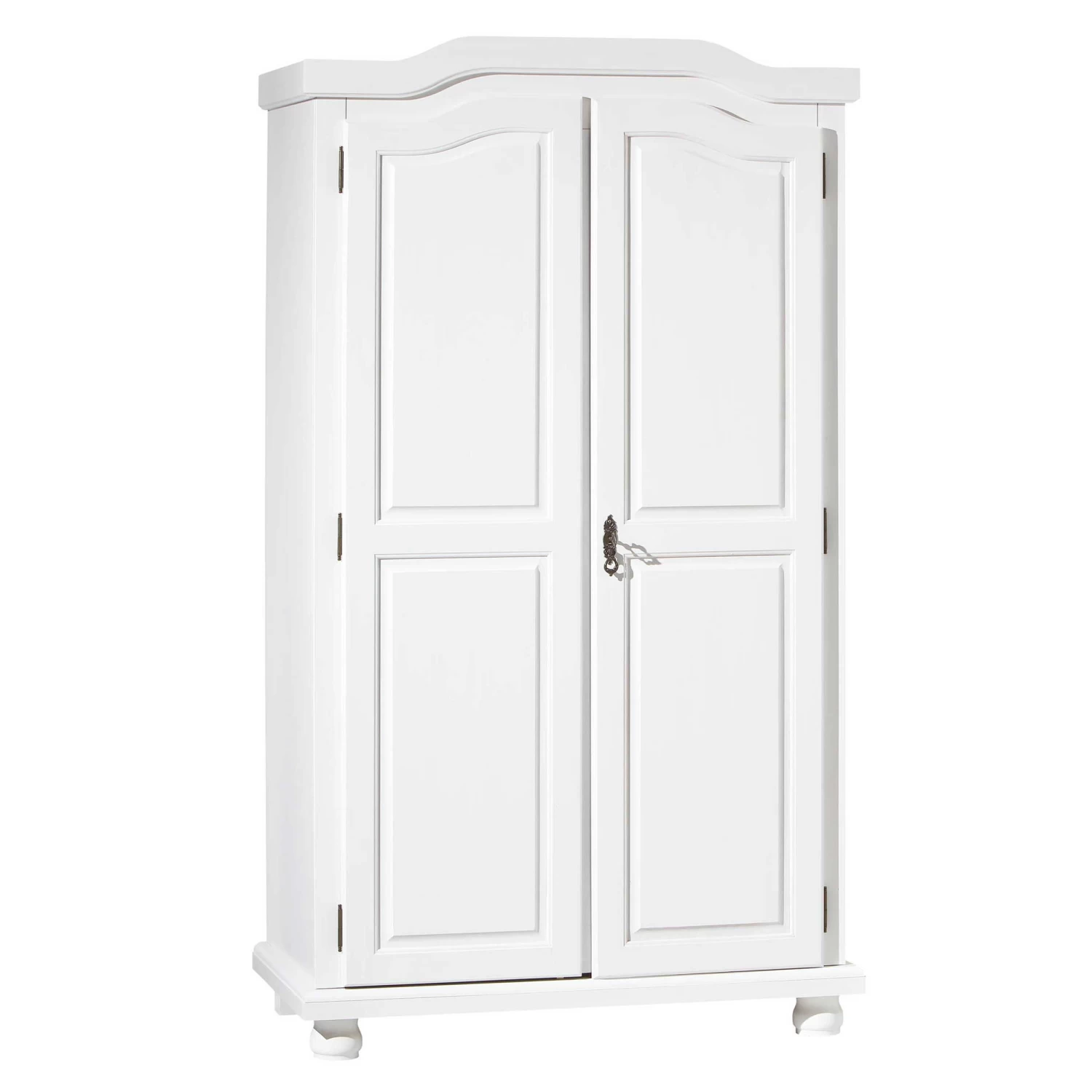 Witte kledingkast Bastian met 2 deuren, gemaakt van massief dennenhout. Bevat een kledingroede, en 4 legplanken.