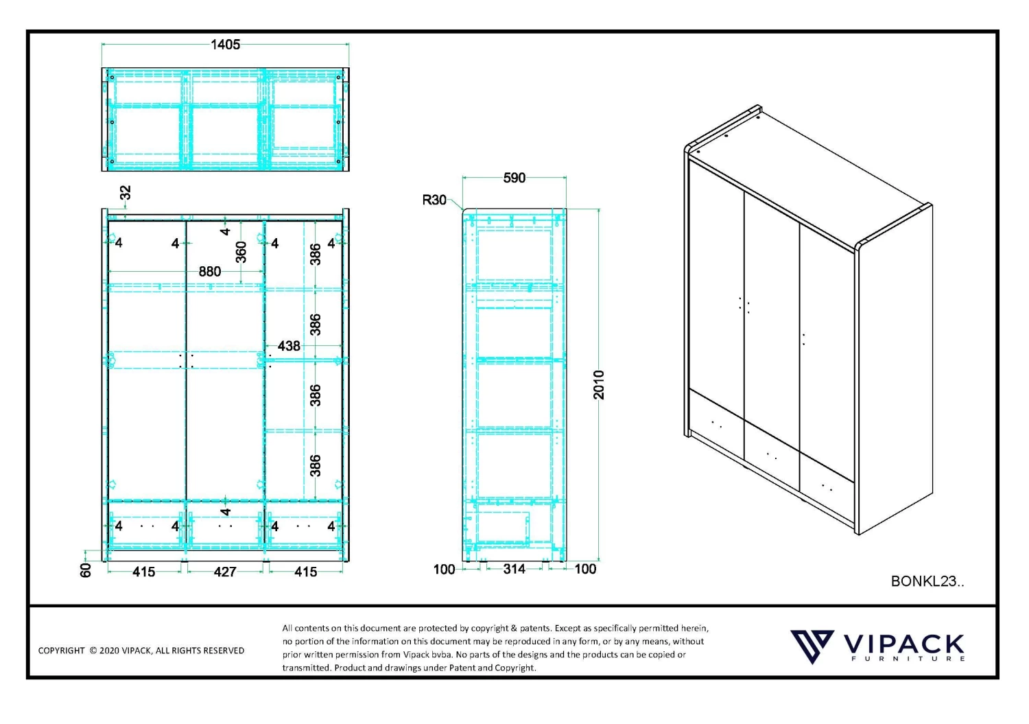 Bovenaan is er een grote legplank met daaronder een kledingroede. De rechterdeur herbergt 3 legplanken. Onderaan zijn er 3 lades voorzien. Deze kledingkasten zijn beschikbaar in dezelfde kleuren als de halfhoogslapers. De montage ervan is zeer eenvoudig dankzij de meegeleverde instructies. Kortom, een must-have als je kiest voor deze collectie! Wil je liever een kleinere kledingkast? Er is ook een versie met 2 deuren beschikbaar!