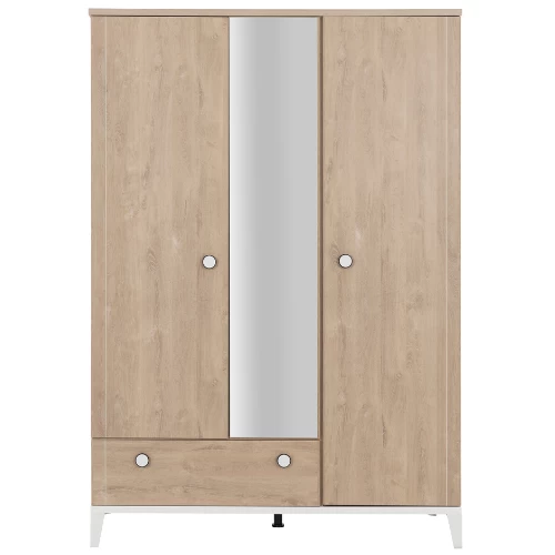 Kledingkast Ciana met 3 deuren, 1 lade en een spiegel. Gemaakt uit spaanplaat met eikdecor.