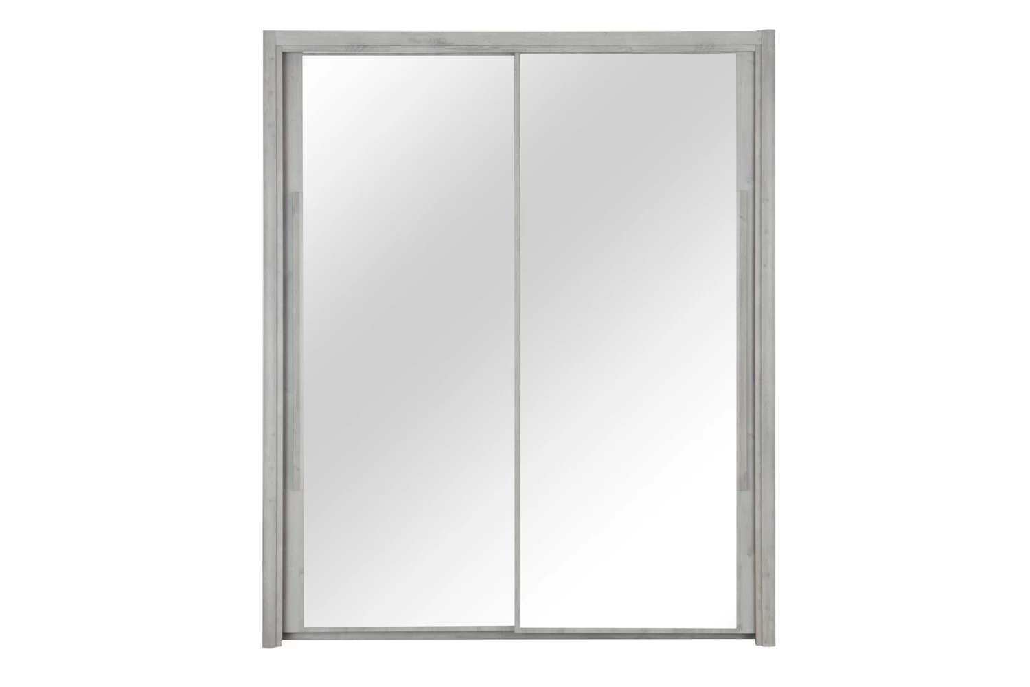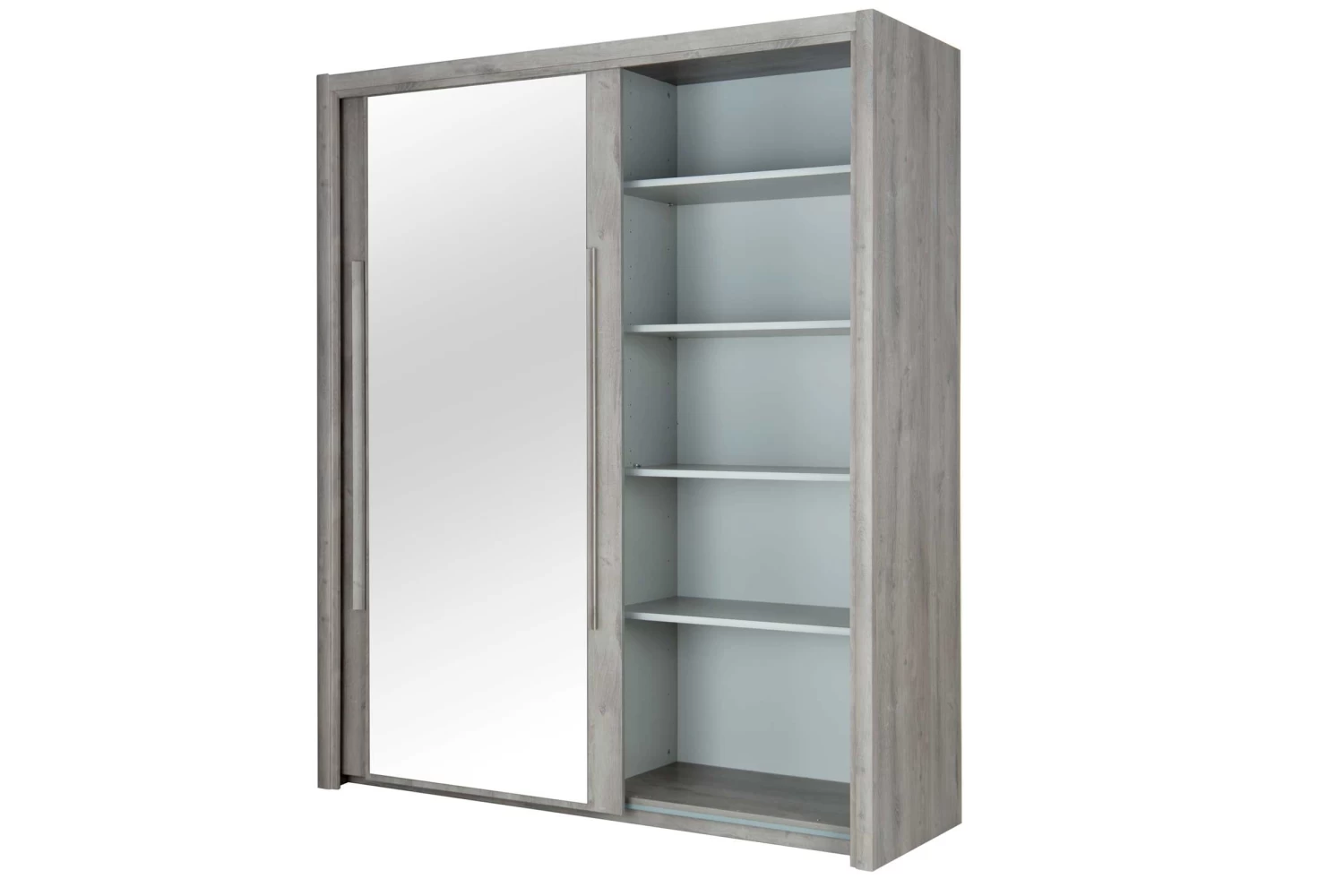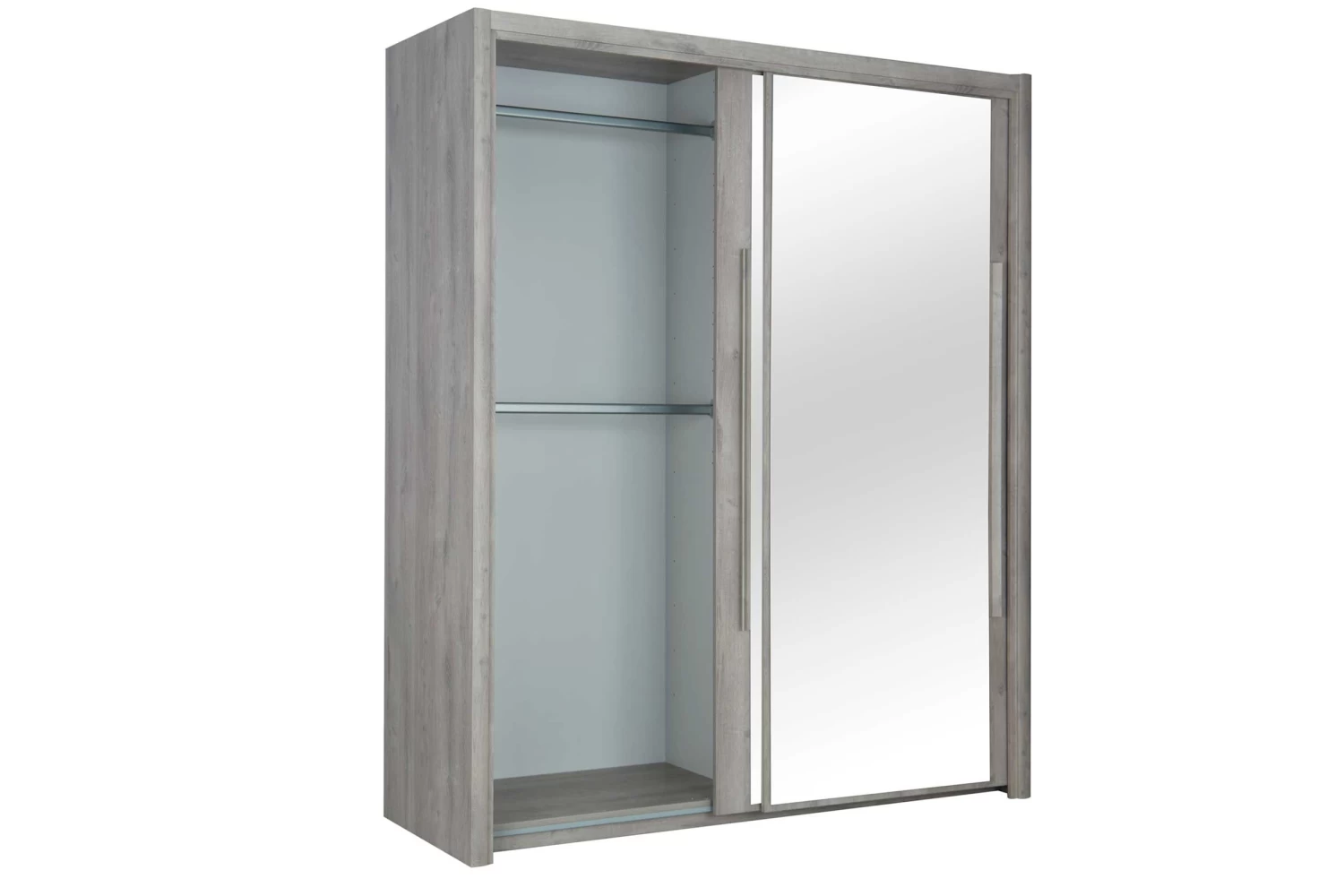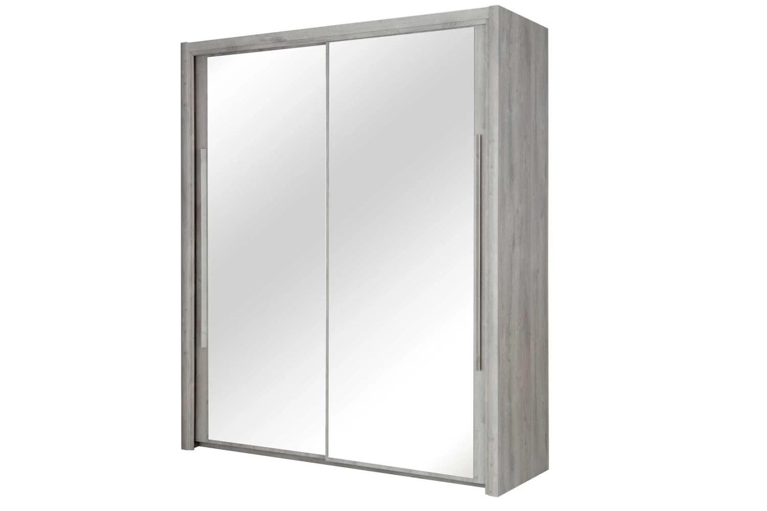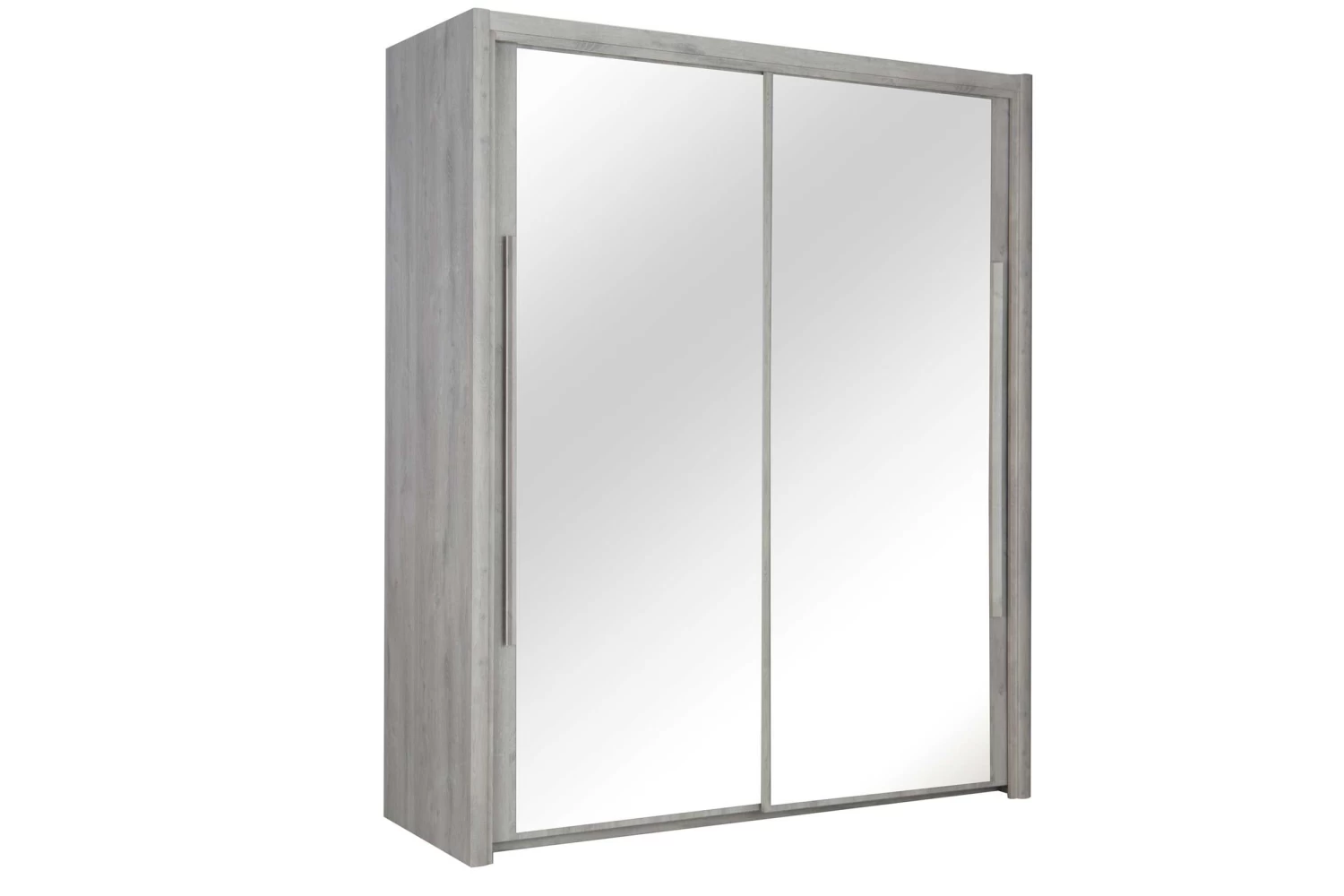 Kledingkast Cody in lichtgrijze eik met 2 schuifdeuren (spiegelglas), 183 cm breed.