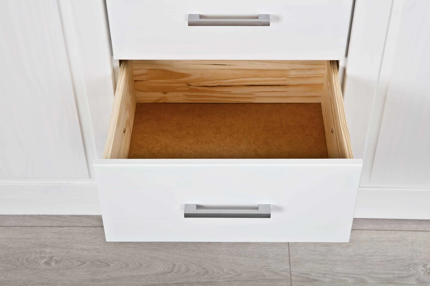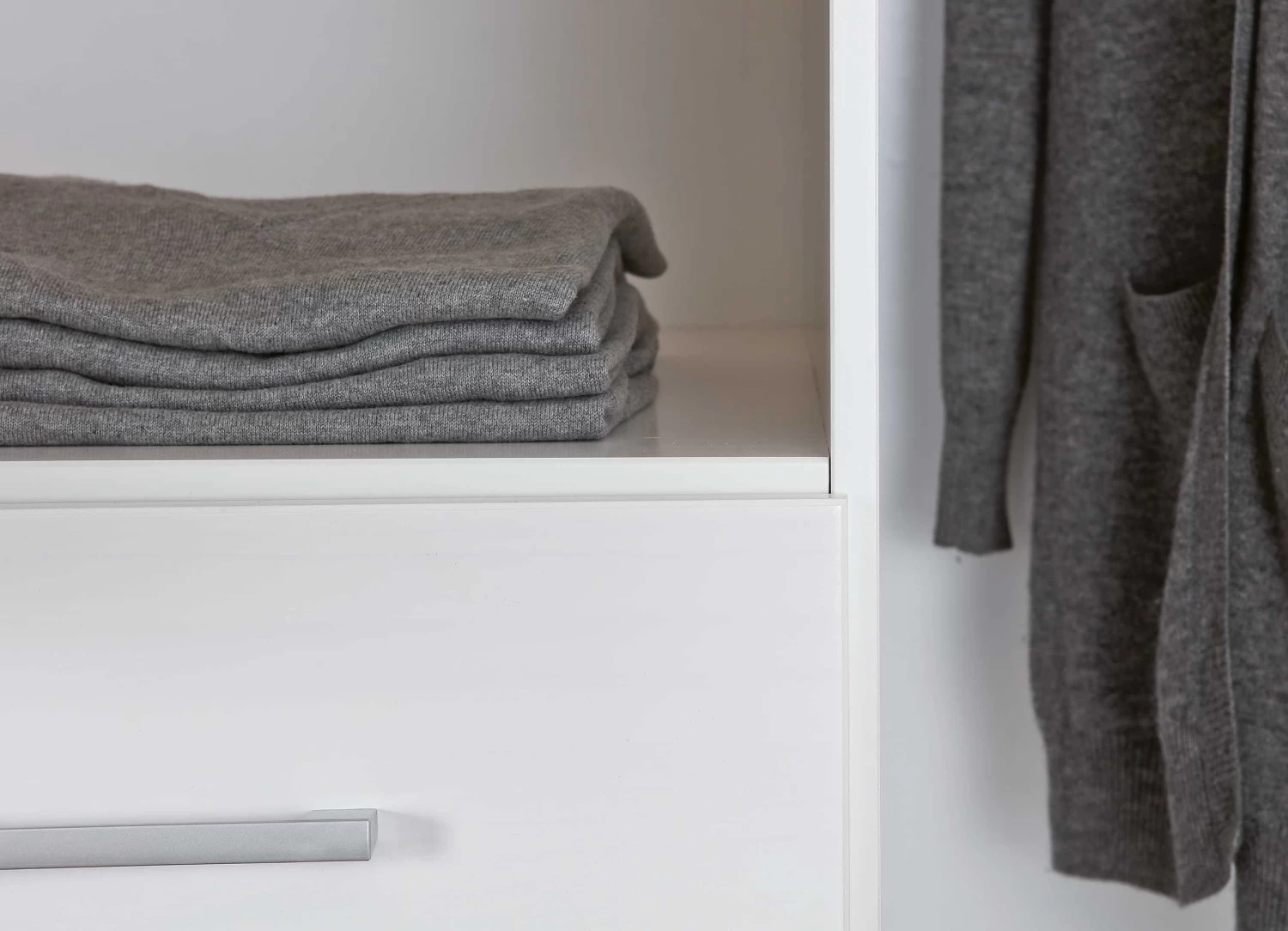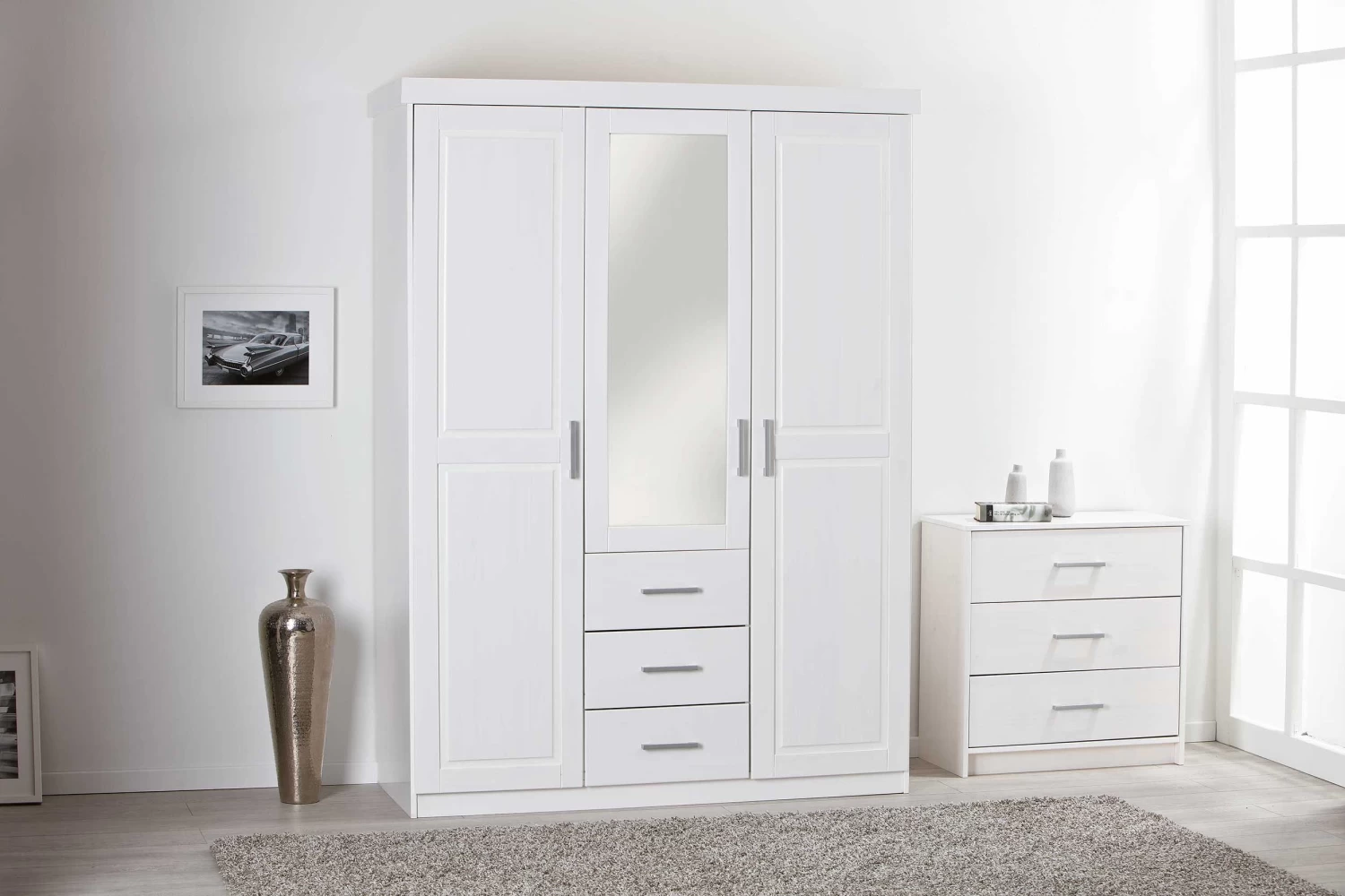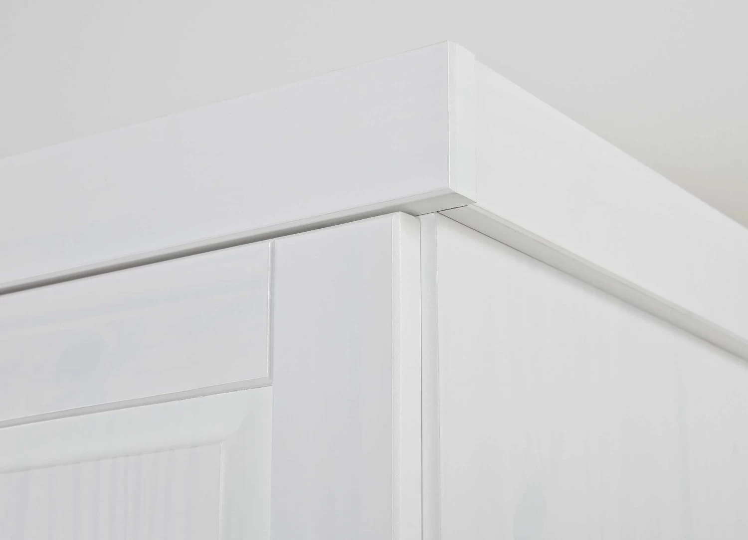 Deze witte kledingkast is gemaakt van massief dennenhout en is ook beschikbaar met een laagje natuurkleurig vernis.