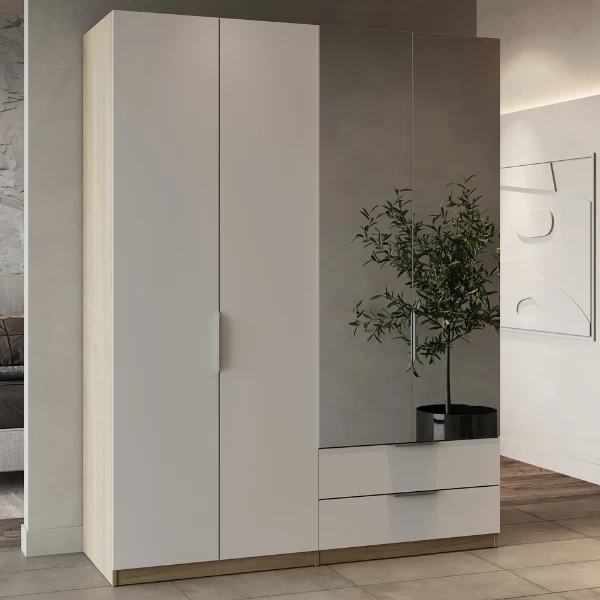 Kledingkast Spectre 157cm Met Spiegel – Mat Wit/eik