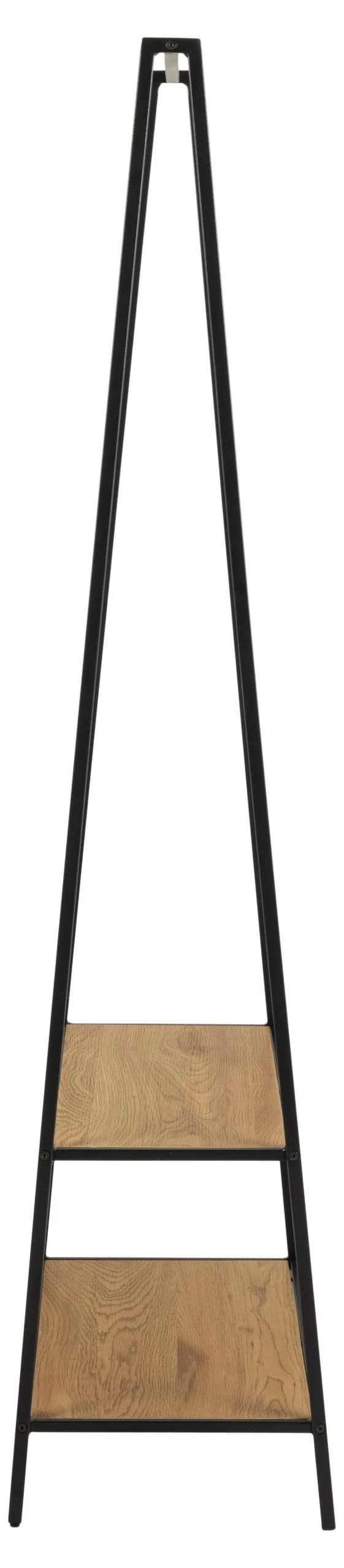 Dit handige Dover-kledingrek is ideaal om in je hang of slaapkamer te plaatsen. Dit rek is gemaakt uit zwart gepoedercoat metaal en wilde eik decor. Het Dover-kledingrek is praktisch dankzij haar kledingroede en twee legplanken. Je kan gemakkelijk je jassen aan de kledingroede hangen en de legplanken gebruiken om hoeden of schoenen op te plaatsen.