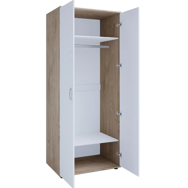 Kleerkast Halula 2 Deuren 1 Kledingroede En 2 Legplanken-wit/eik