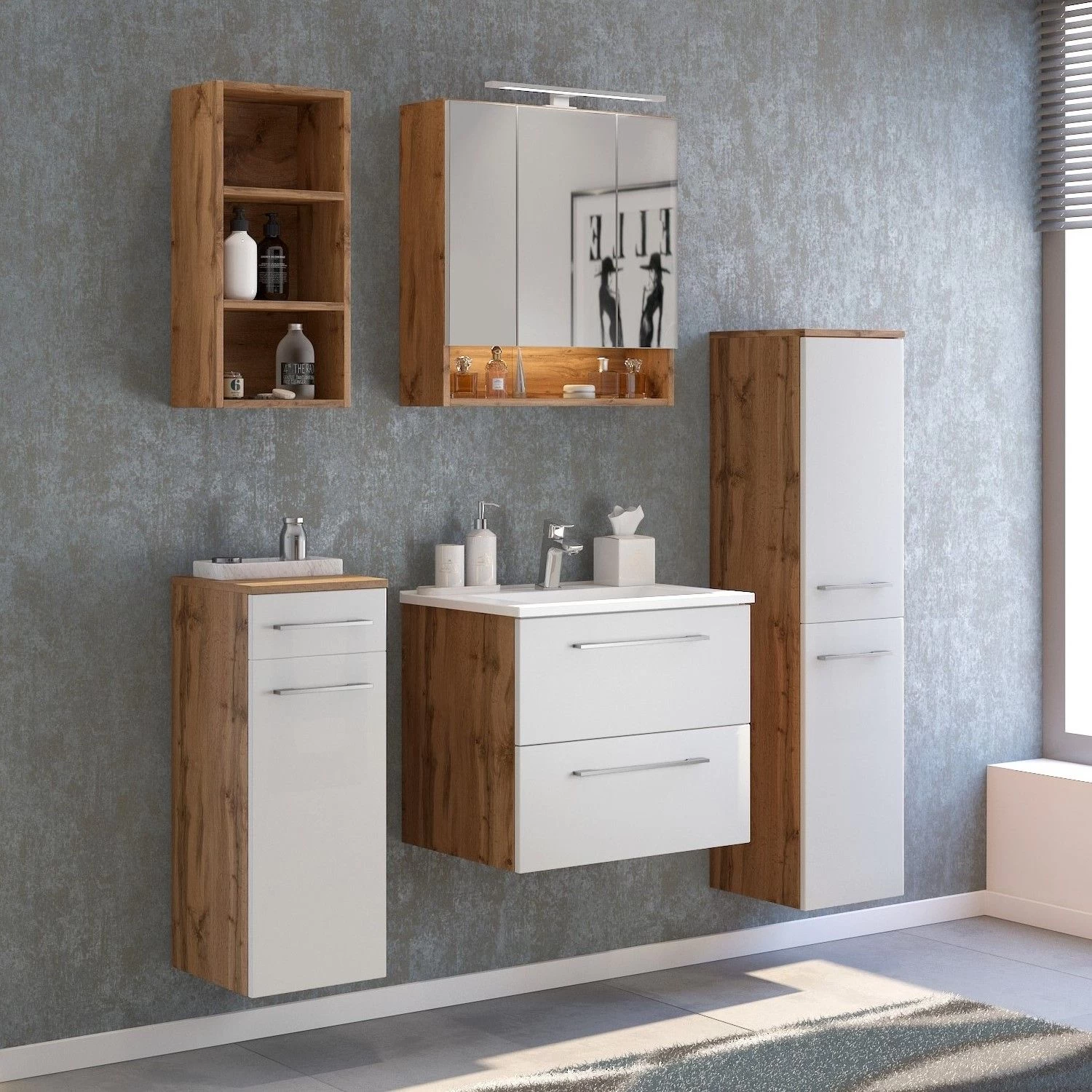 Wie zoekt naar een leuk contrast tussen donker en licht, tussen bruin en wit, is bij deze Sefa-collectie aan het juiste adres. Het kolomkastje is samengesteld uit spaanplaat in wotan eikdecor en een voorkant in mat witte MDF. De badkamerkast is uitgerust met twee draaideuren en twee legplanken binnenin. De kast wordt standaard geleverd met meubelpootjes, waardoor je kan kiezen om het aan de muur of op de grond te installeren. Ontdek de rest van deze en de volledige wotan eiken uitvoering op onze website!