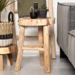 Dit bijzondere krukje is gemaakt van houten takken die een robuust zitvlak dragen. Het munggur heeft duidelijke nerven en natuurlijke glooiingen. Krukje Jawa brengt dan ook authenticiteit aan in elk interieur. Gebruik de kruk om op te zitten, als voetenbankje of zelfs als klein tafeltje. Een klein meubelstuk met een groots karakter.