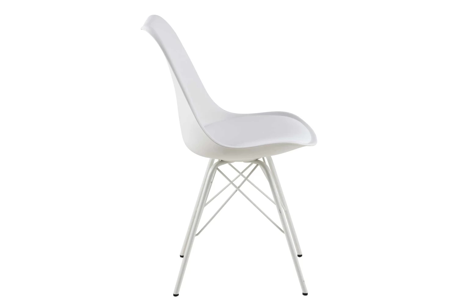 De witte Irma kuipstoel is gemaakt van kunststof en uitgerust met een zitkussen uit kunstleder. De poten van de stoel zijn uit wit gepoedercoat metaal. Deze stoel past perfect voor jouw eetkamer of keuken, als je houdt van de Scandinavische woonstijl.