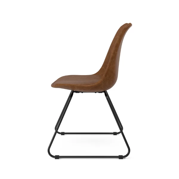 Kuipstoel Liane heeft een kuip die gemaakt is uit polypropyleen. Dit materiaal is zeer stevig en licht en wordt daarom vaak gebruikt bij de productie van stoelen. Omdat dit materiaal relatief hard is, is deze stoel bekleed met bruin kunstleer en voorzien van een zitkussen. Het resultaat is een zeer trendy stoel. De zwart gepoedercoate sledepoten maken het geheel helemaal af!