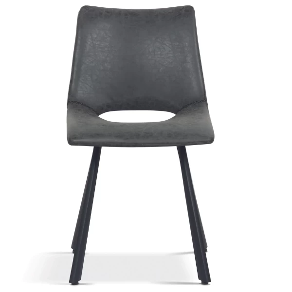 Kuipstoel Sissi heeft een stoere, industriële look door zijn bekleding in PU-leder en zijn zwarte metalen poten. Het gat in de zitting geeft de stoel een speels karakter. Ook verkrijgbaar in andere kleuren.Â