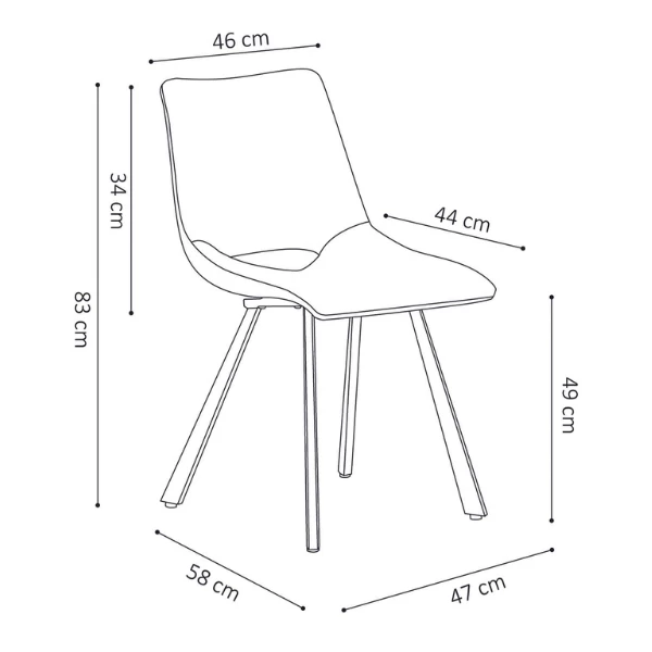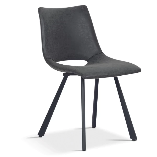 Kuipstoel Sissi heeft een bekleding in PU-leder en zwarte metalen poten.Â