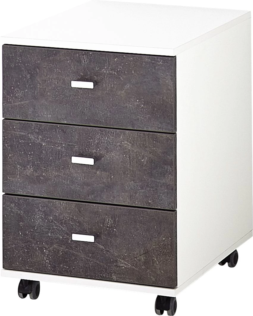 Ladeblok Aldo in kleurencombinatie wit met lades in basaltdecor, uitgerust met 3 lades, metalen handgrepen en wieltjes.Â