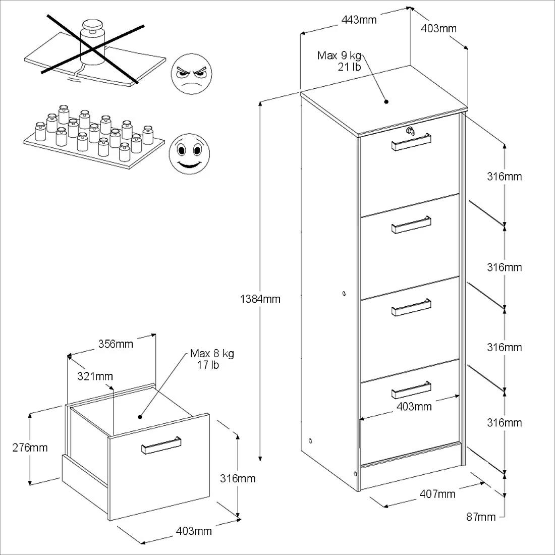 Voeg wat extra opbergruimte toe aan je bureau met dit ladeblok Marri uit spaanplaat. Het bestaat uit vier lades, waarvan je de bovenste kan afsluiten. De binnenkant van de lades meet 35,6 cm op 32,1 cm en is 27,6 cm hoog. Het compacte formaat van de kast zorgt ervoor dat je je spullen altijd binnen handbereik kan hebben. Op zoek naar iets kleiners? Bekijk dan het ladeblok met drie lades.Â