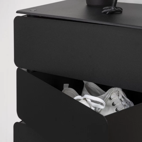 Ladekast Joan is gemaakt uit zwart gepoedercoat staal en bestaat uit 7 uitklapbare lades.Â