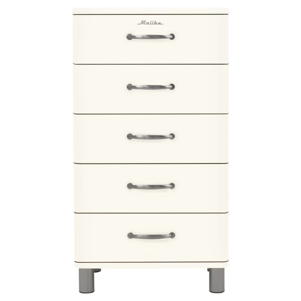Deze ladekast maakt deel uit van de Malibu-collectie. Deze collectie is al sinds eind jaren 90 op de markt en is nog steeds ongekend populair. Ze is geïnspireerd op de ideeën en stijlen uit de jaren 50 en 60, de tijd waarin de jongere generatie steeds meer brak met de gevestigde normen en waarden uit die tijd. Designer Rutger Andersson liet zich voor deze kast inspireren door de Amerikaanse Westkust en de toenmalige dinercultuur. Deze kast is daarom naast in het zwart en wit ook verkrijgbaar in echte retrokleuren (red sand, sunny yellow, lagoon blue en spring green). Ook het uitgesneden logo en de afgeronde hoeken zorgen ervoor dat deze ladekast in een retro-interieur thuishoort.