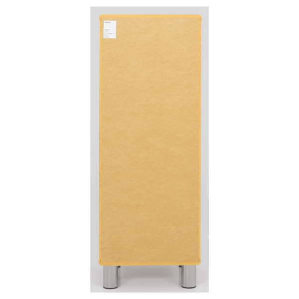Deze ladekast is uitgerust met 6 lades. De boven- en onderkant van deze kast zijn gemaakt uit geelgelakt MDF, de zijkanten zijn gemaakt uit spaanplaat en zijn afgewerkt met een geel melaminelaagje.