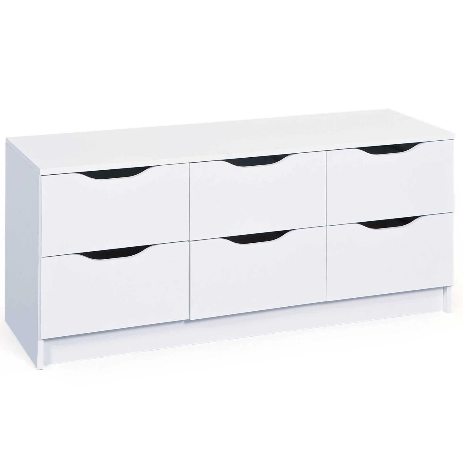 Witte ladekast Westphalen met 6 laden, gemaakt van spaanplaat.