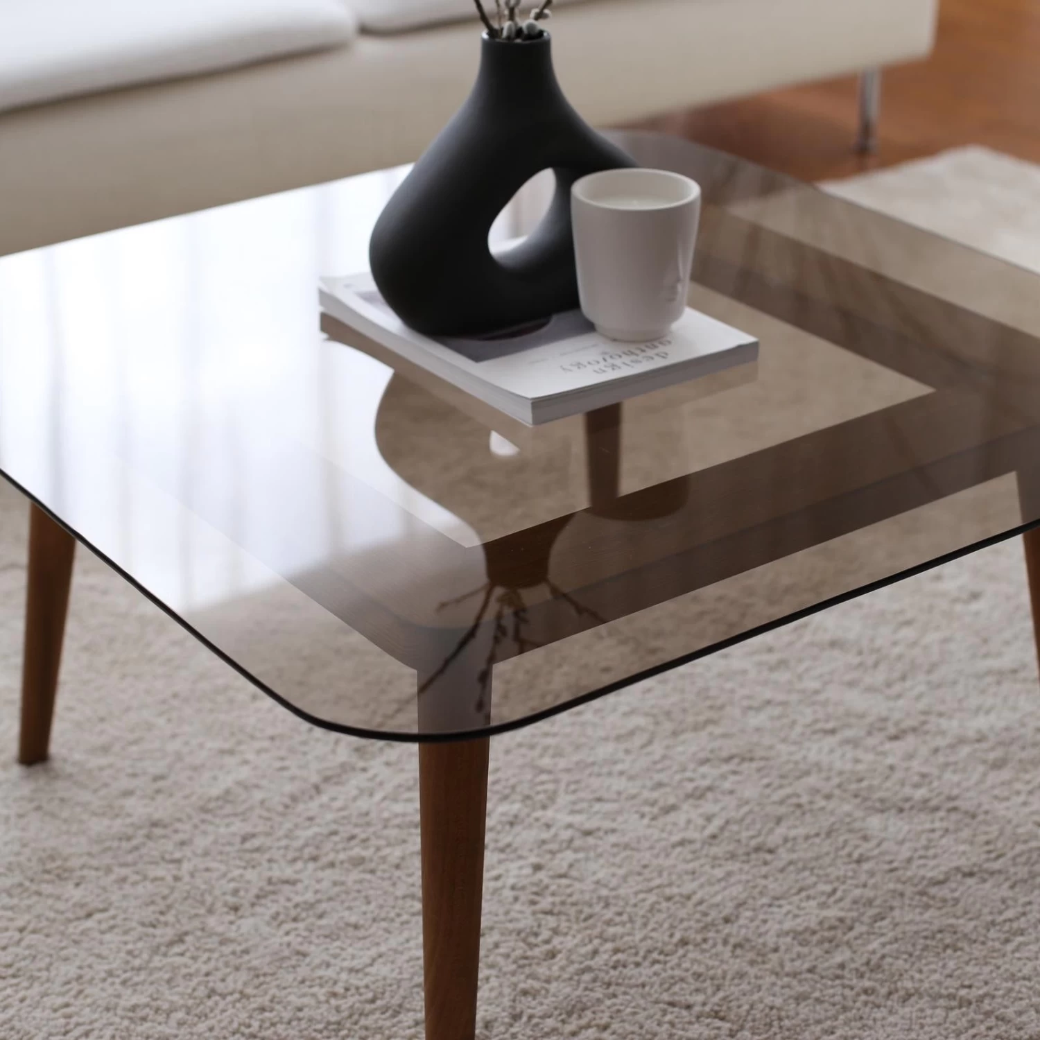 De Locelso Salontafel is gemaakt van 100% massief grenen hout en heeft een 6 mm dik frame van gehard glas. De poten zijn gemaakt van beukenhout en hij wordt geleverd in een bronzen kleur. Gemonteerd met afmetingen van 80cm (B) x 40cm (H) x 80cm (D)