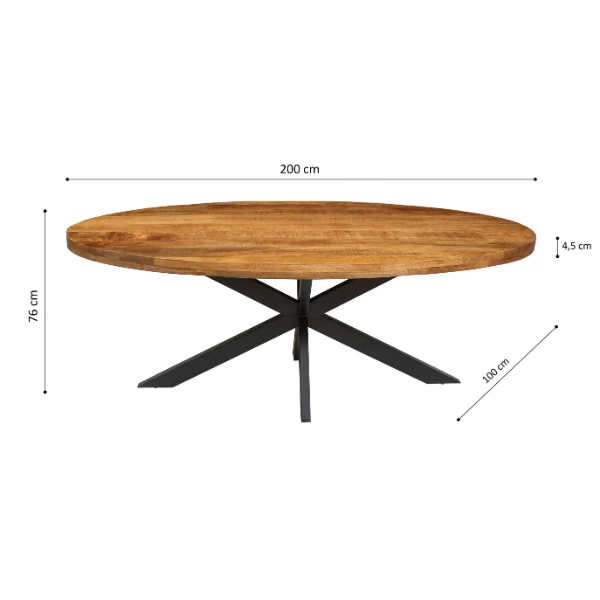 De Alexa 200 cm Ovale Magnolia Tafel is een prachtig meubelstuk dat eigentijds design combineert met natuurlijke schoonheid. Gemaakt met een metalen structuur en een exotisch houten magnolia blad, straalt deze tafel elegantie en verfijning uit. Met afmetingen van H-H 76 x B-L 200 x D-P 100 cm en een blad dat 45 mm dik is, biedt het voldoende ruimte om te dineren of te werken.