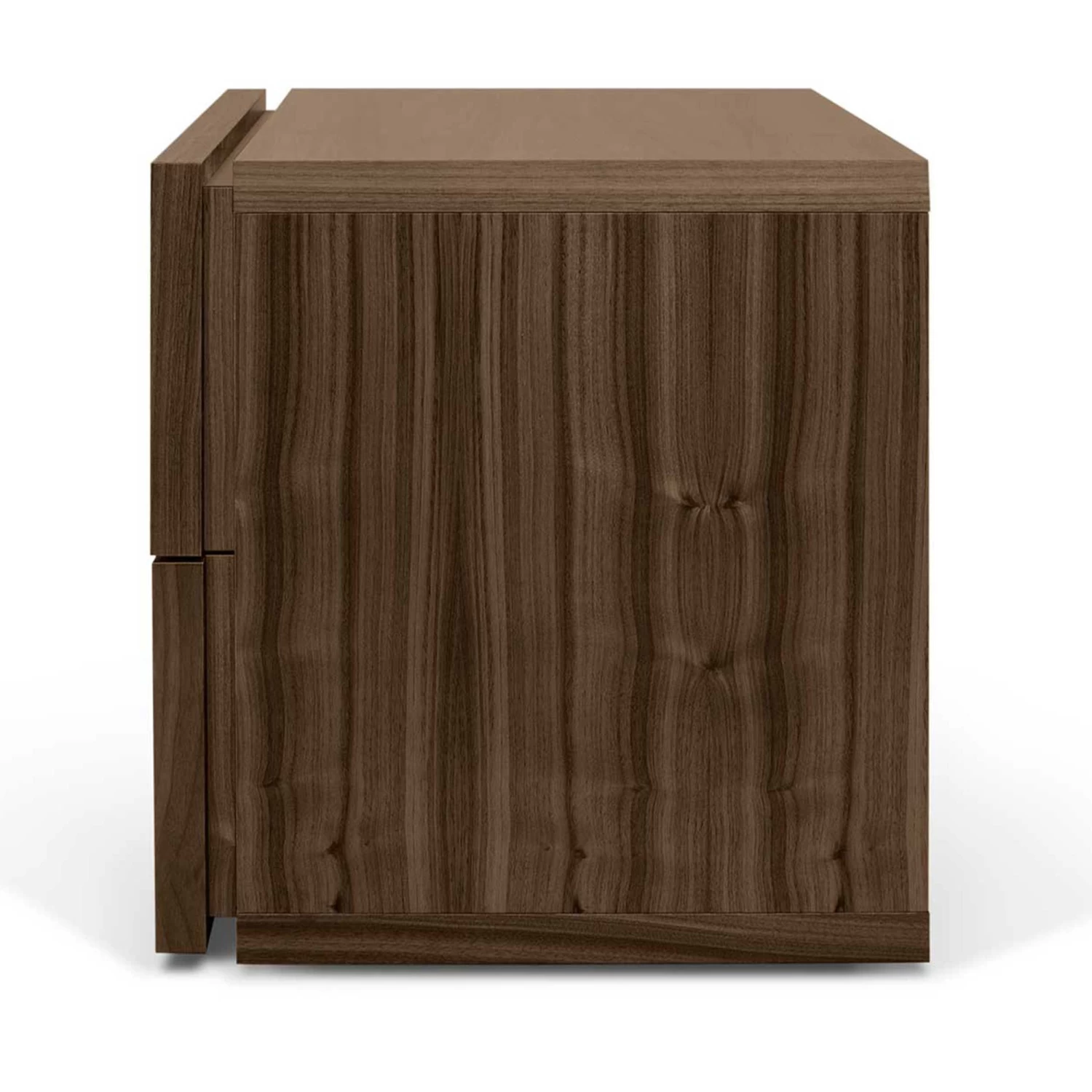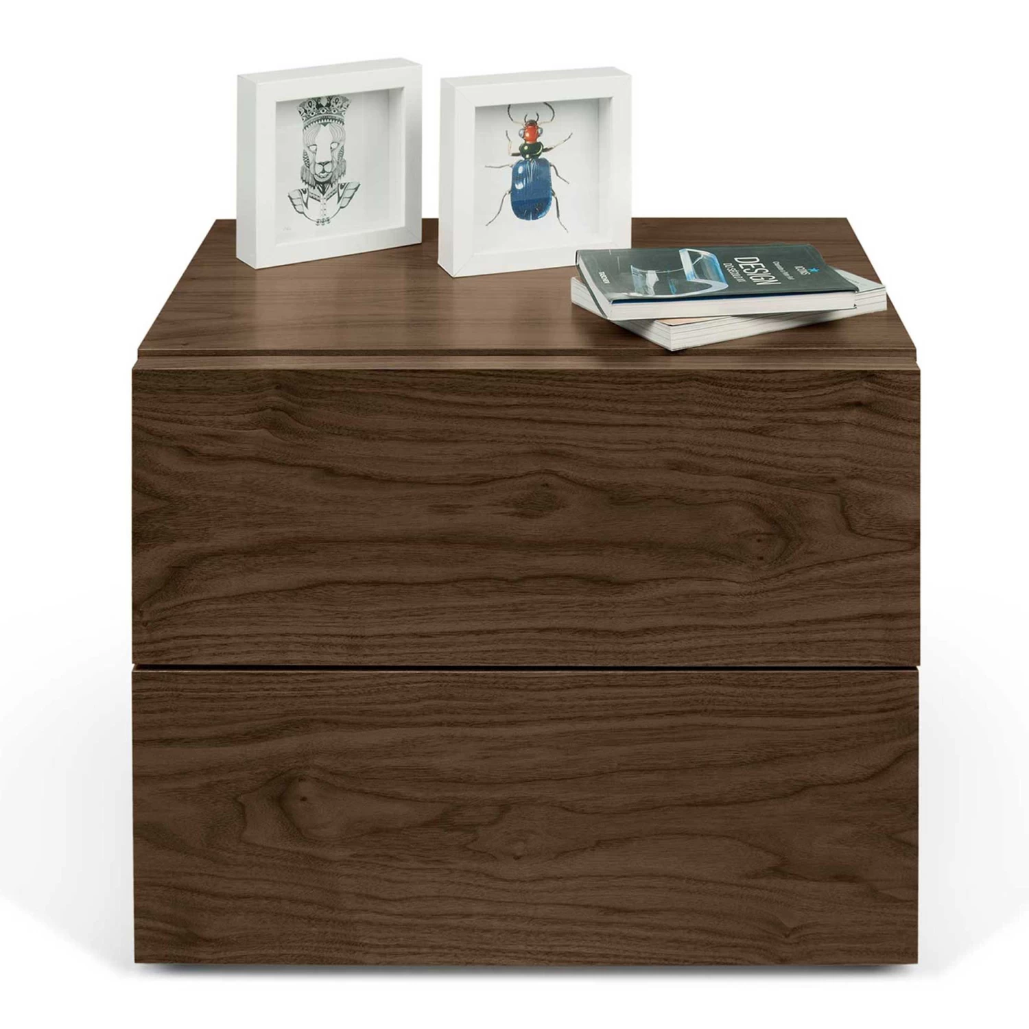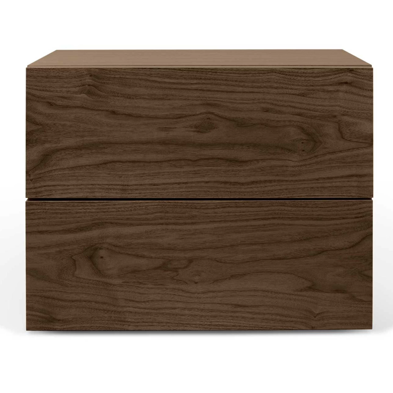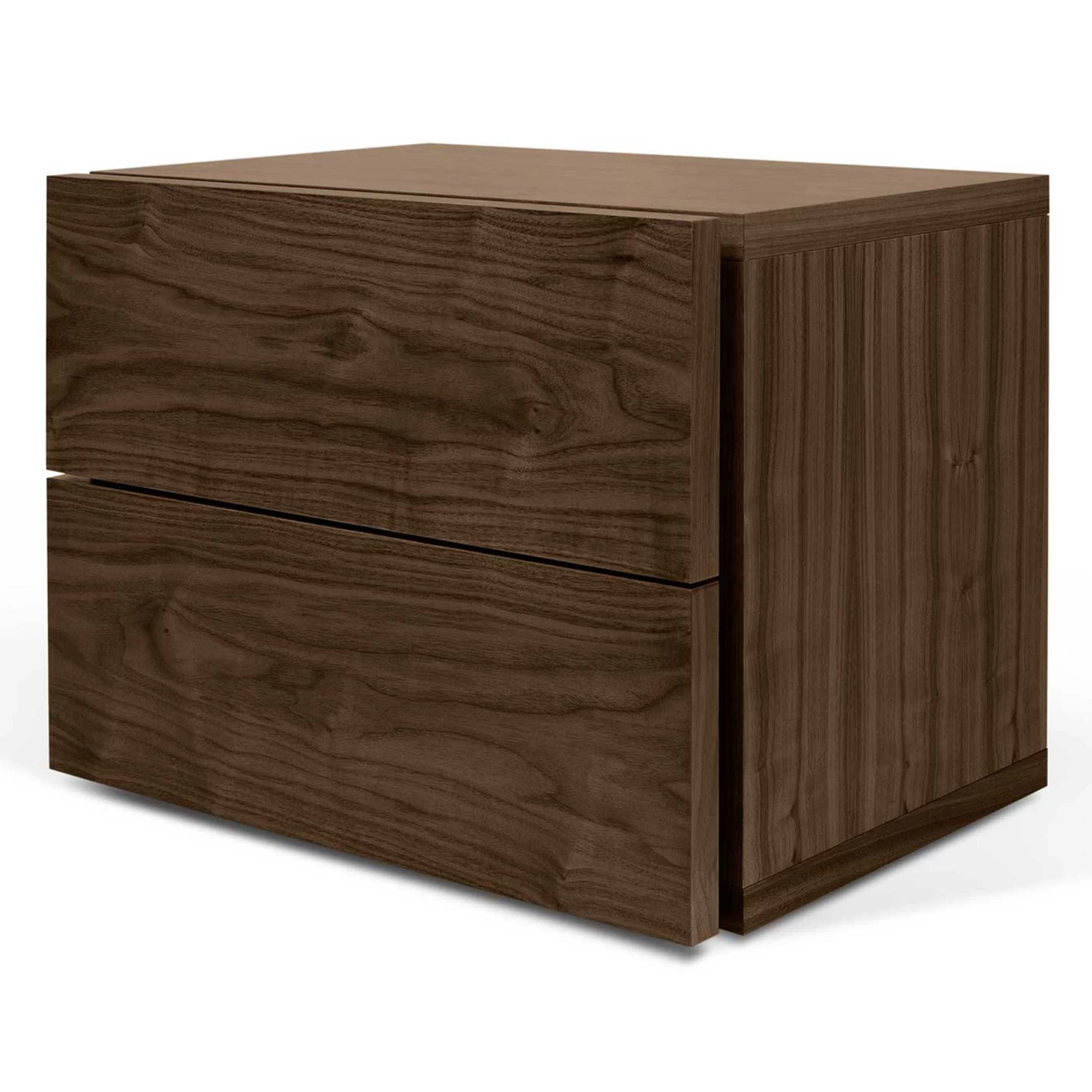 Nachttafel Aurora is gemaakt van honingraatpaneel en is afgewerkt met een laagje walnootfineer.