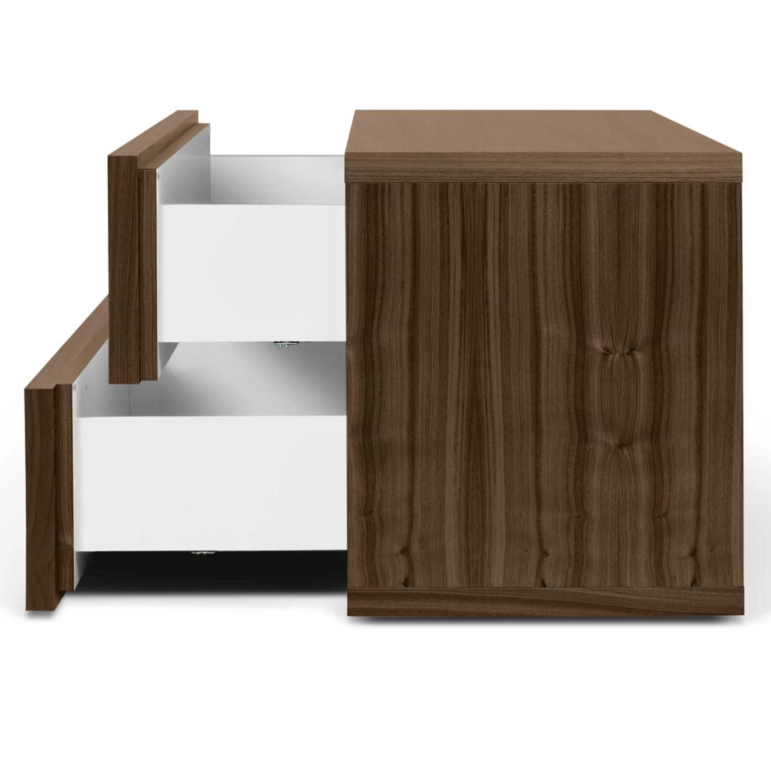Onmisbaar naast jouw bed is dit nachtkastje met haar 2 ruime laden. De greeploze laden geven het nachtkastje een strakke, moderne uitstraling en kunnen ook aan de zijkanten geopend worden. Elke lade kan maximum 5 kg dragen.