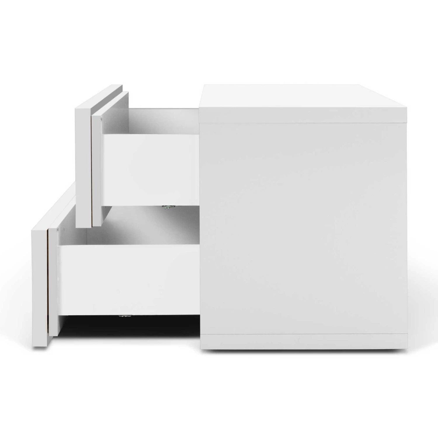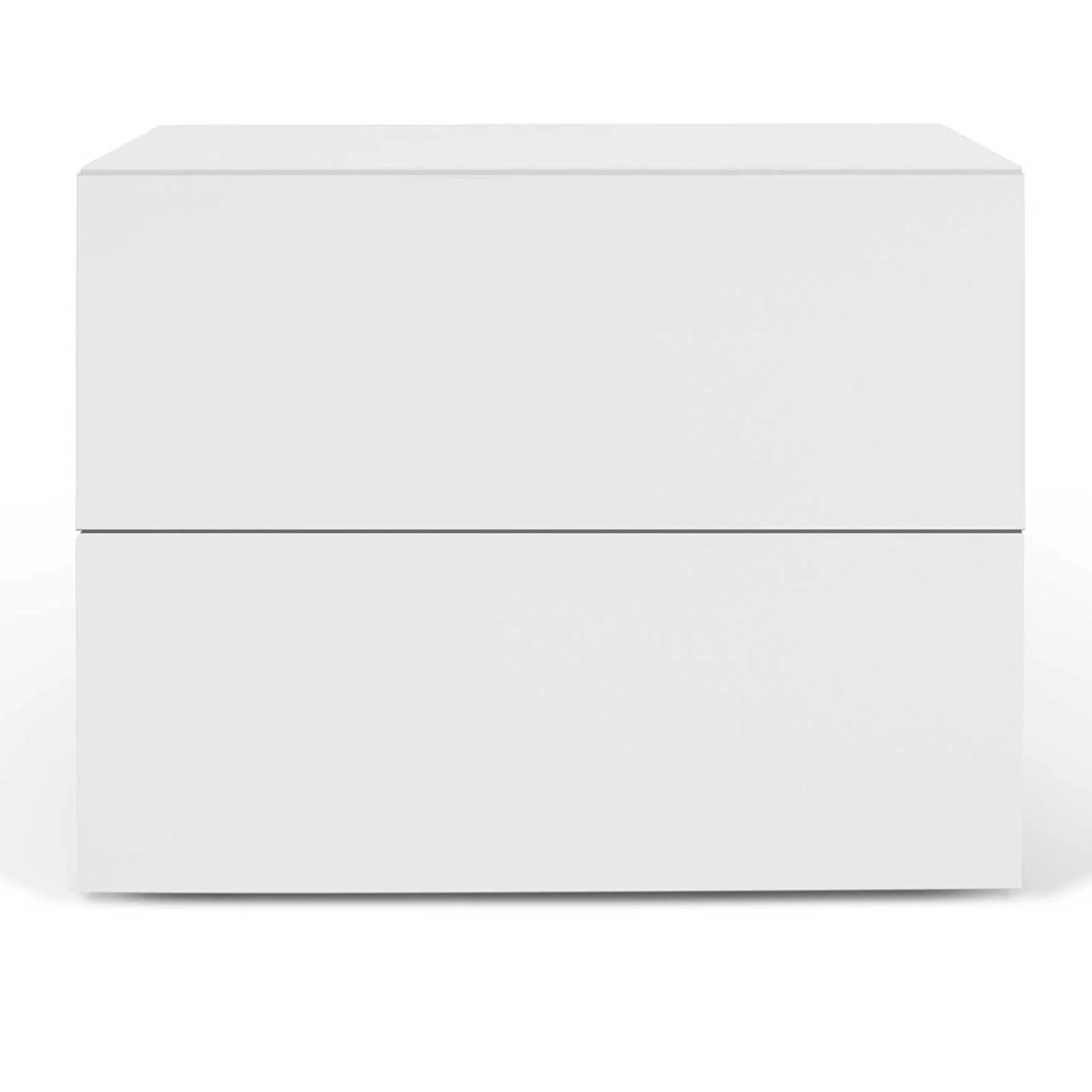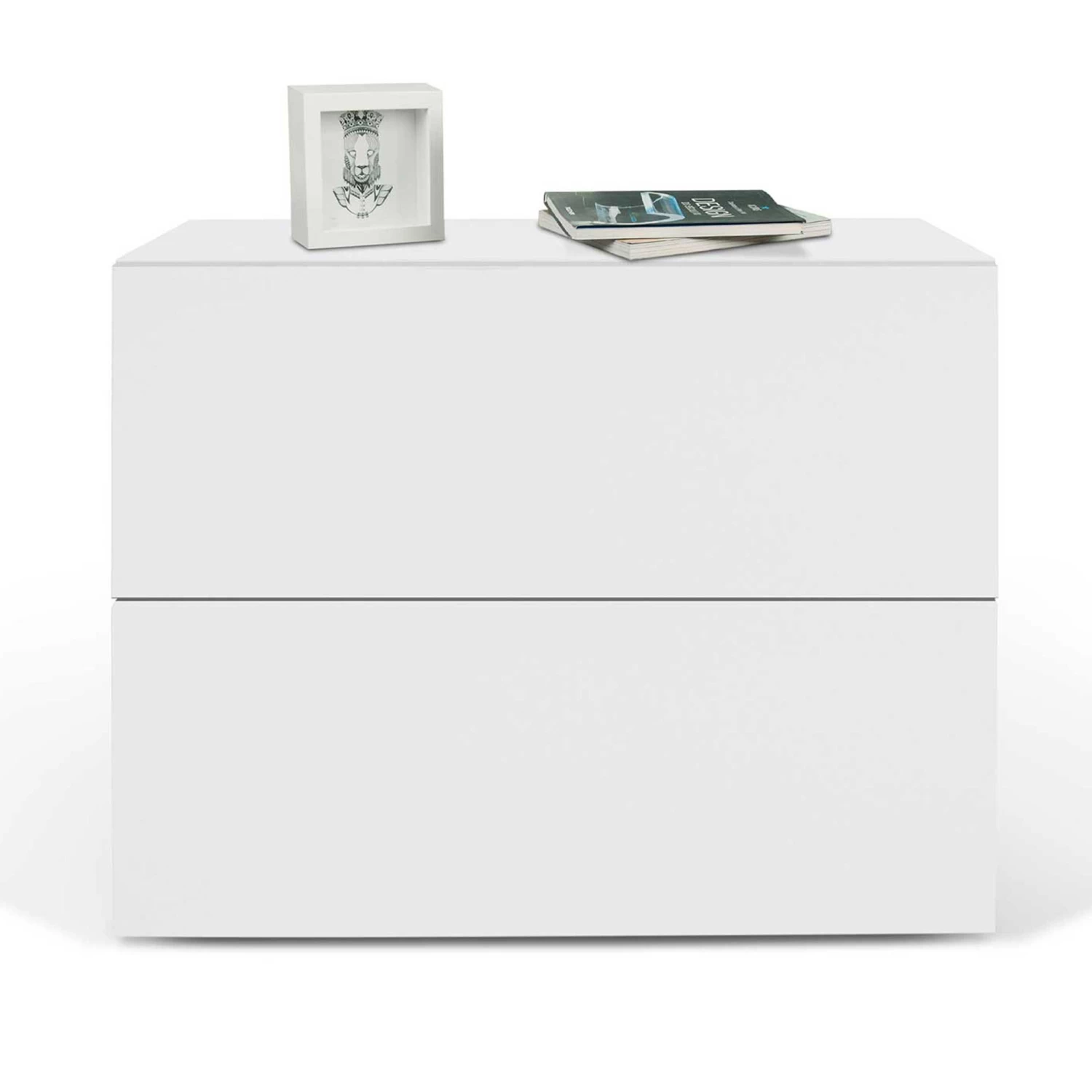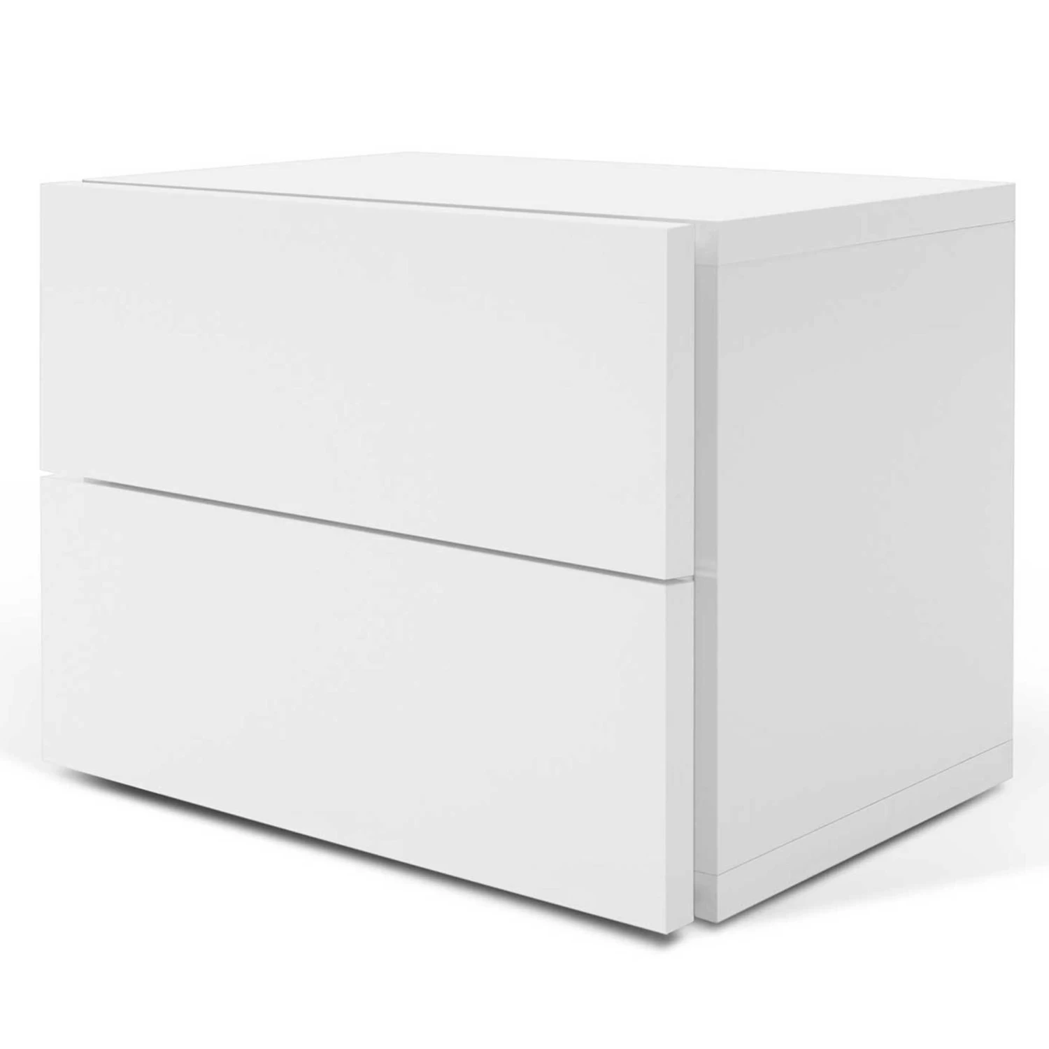 nachtkastje met haar 2 ruime laden. De greeploze laden geven het nachtkastje
