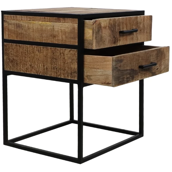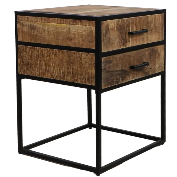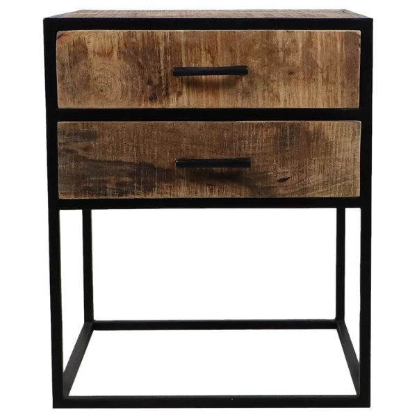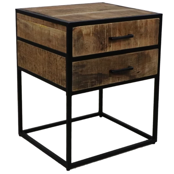Nachtkastje Mitchell 45x40x55cm uit mangohout en metaal. Met 2 lades.Â