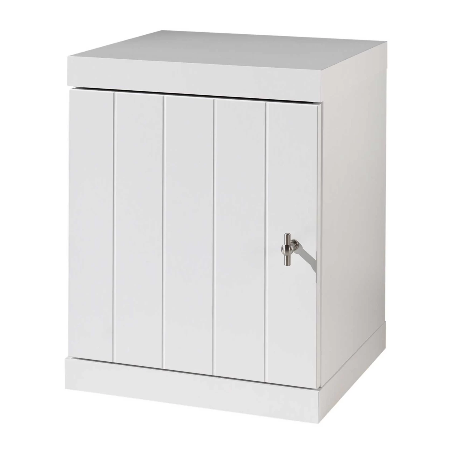 Bij een kinderbed hoort natuurlijk ook een nachtkastje. Deze nachttafel in MDF is wit van kleur en beschikt over een deur met daarachter 2 opbergvakken. Jouw kleine schat kan er dus allerlei spulletjes opbergen. De verticale lijnen zorgen voor een leuk effect.