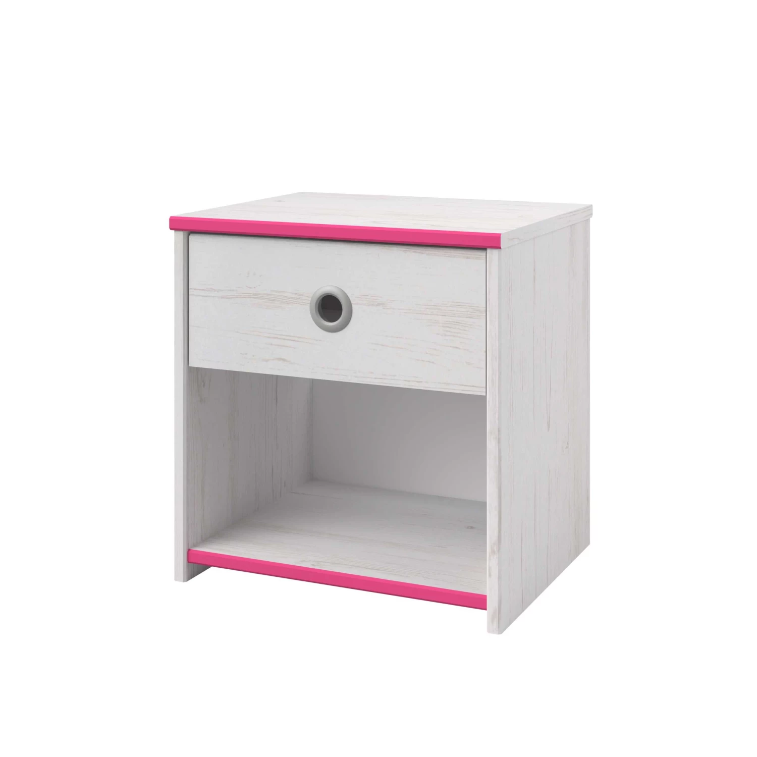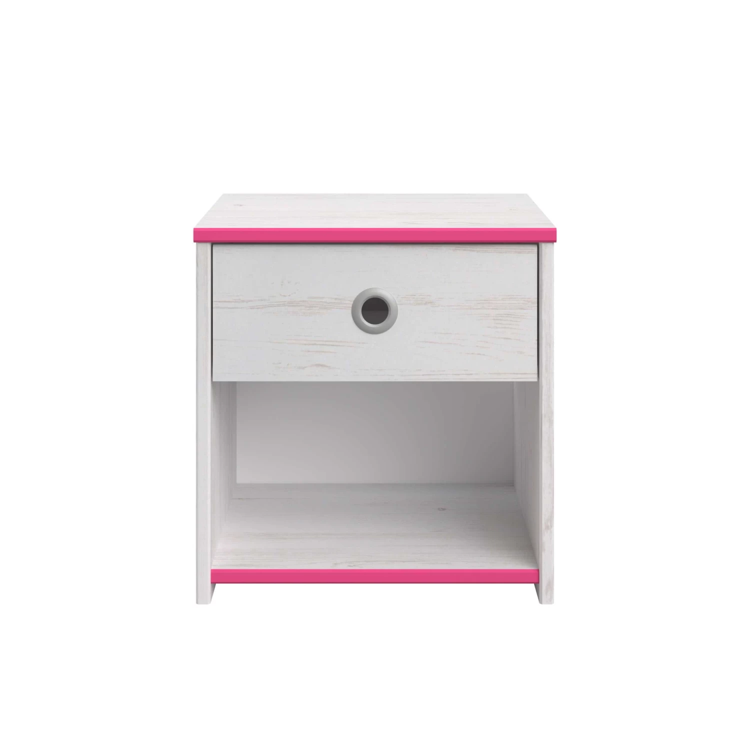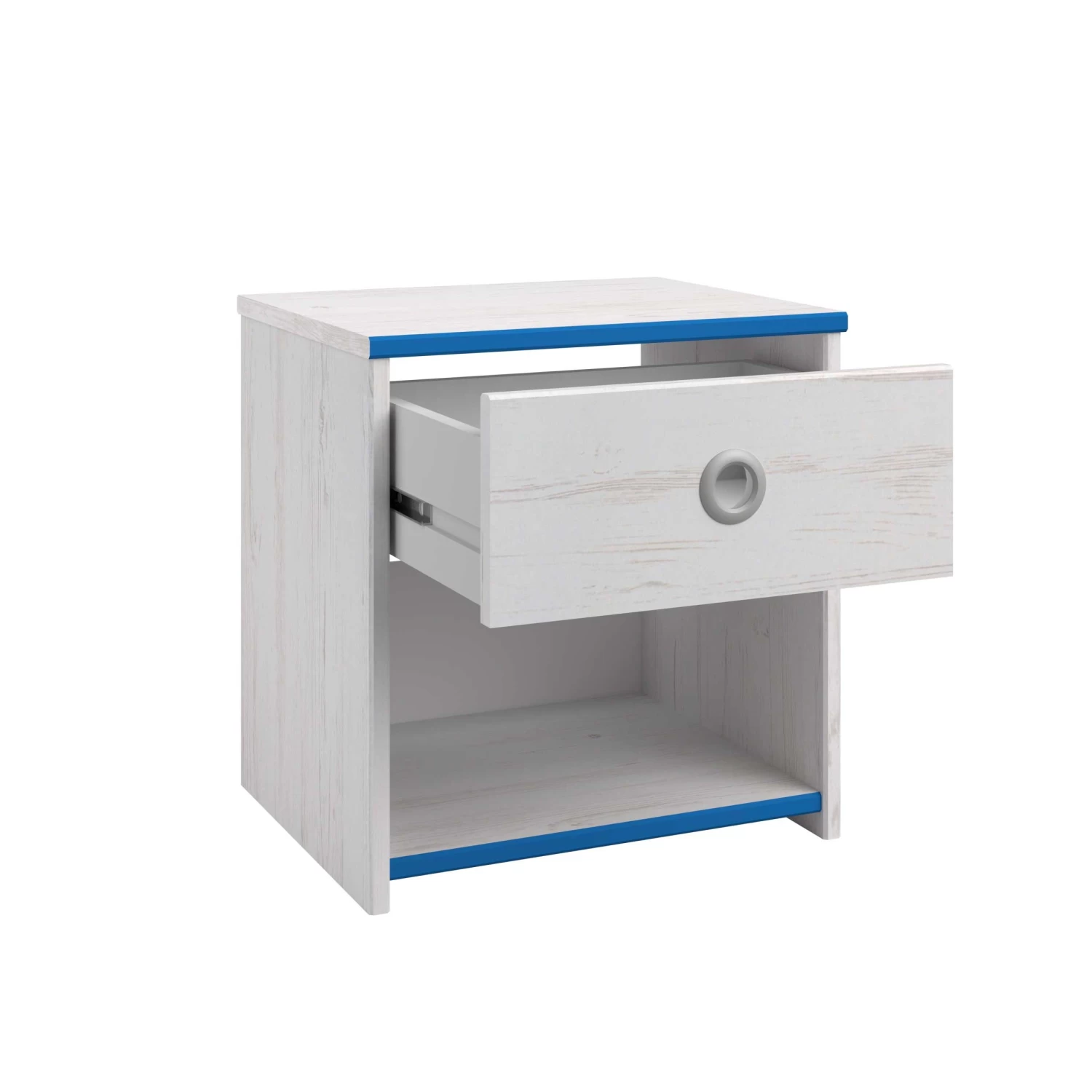 Plaats dit leuke nachtkastje naast het Smoozy kajuitbed! Het nachtkastje heeft een lade met een origineel rond handvat in grijs aluminium. Het kastje beschikt ook over een opbergvak voor bijvoorbeeld een leesboek. Â
