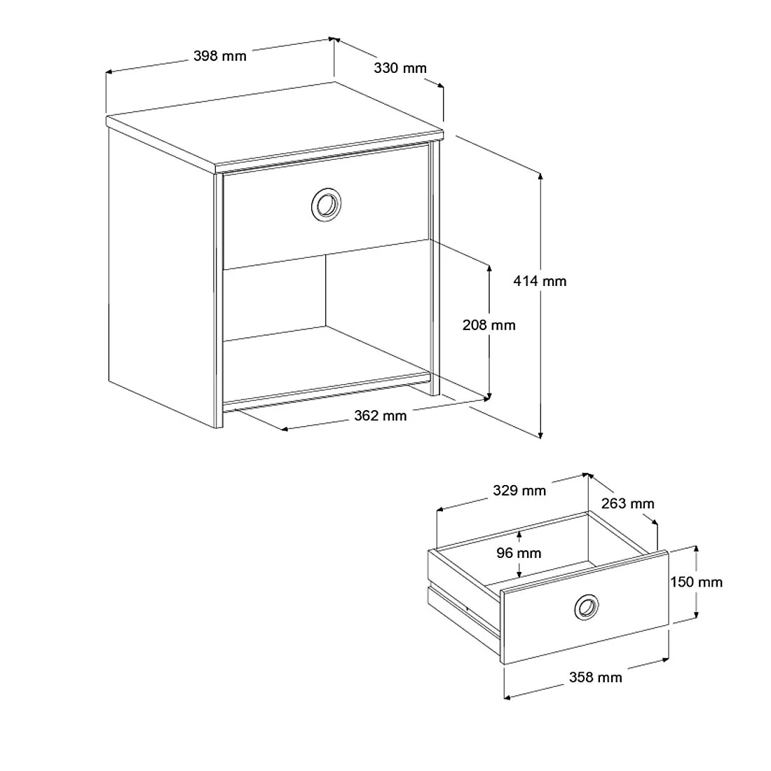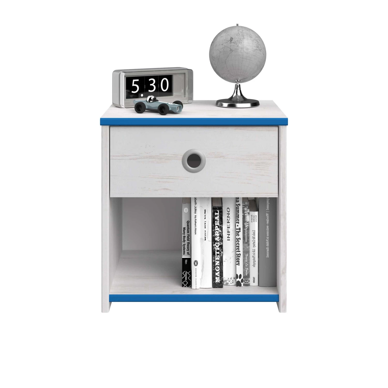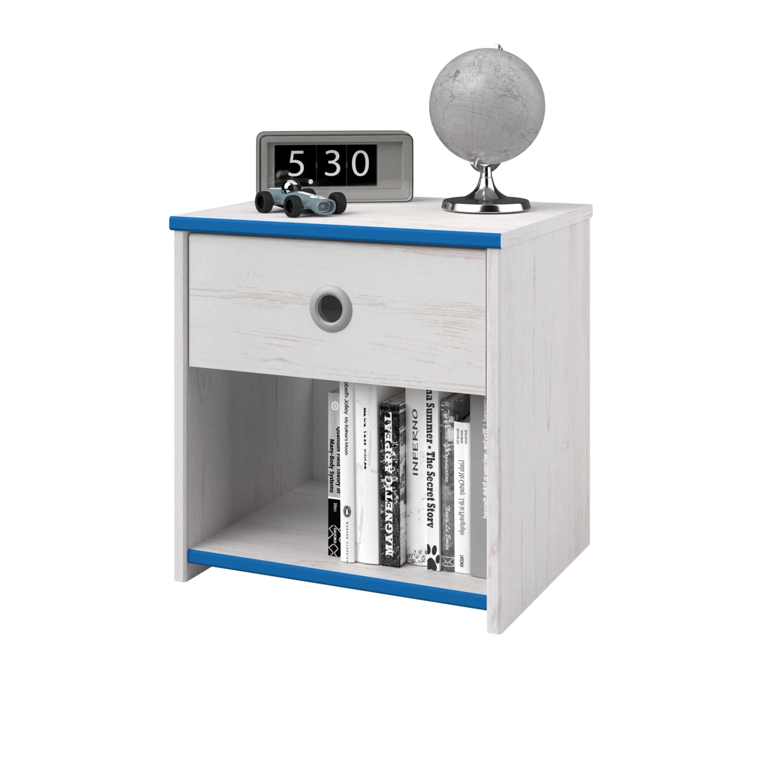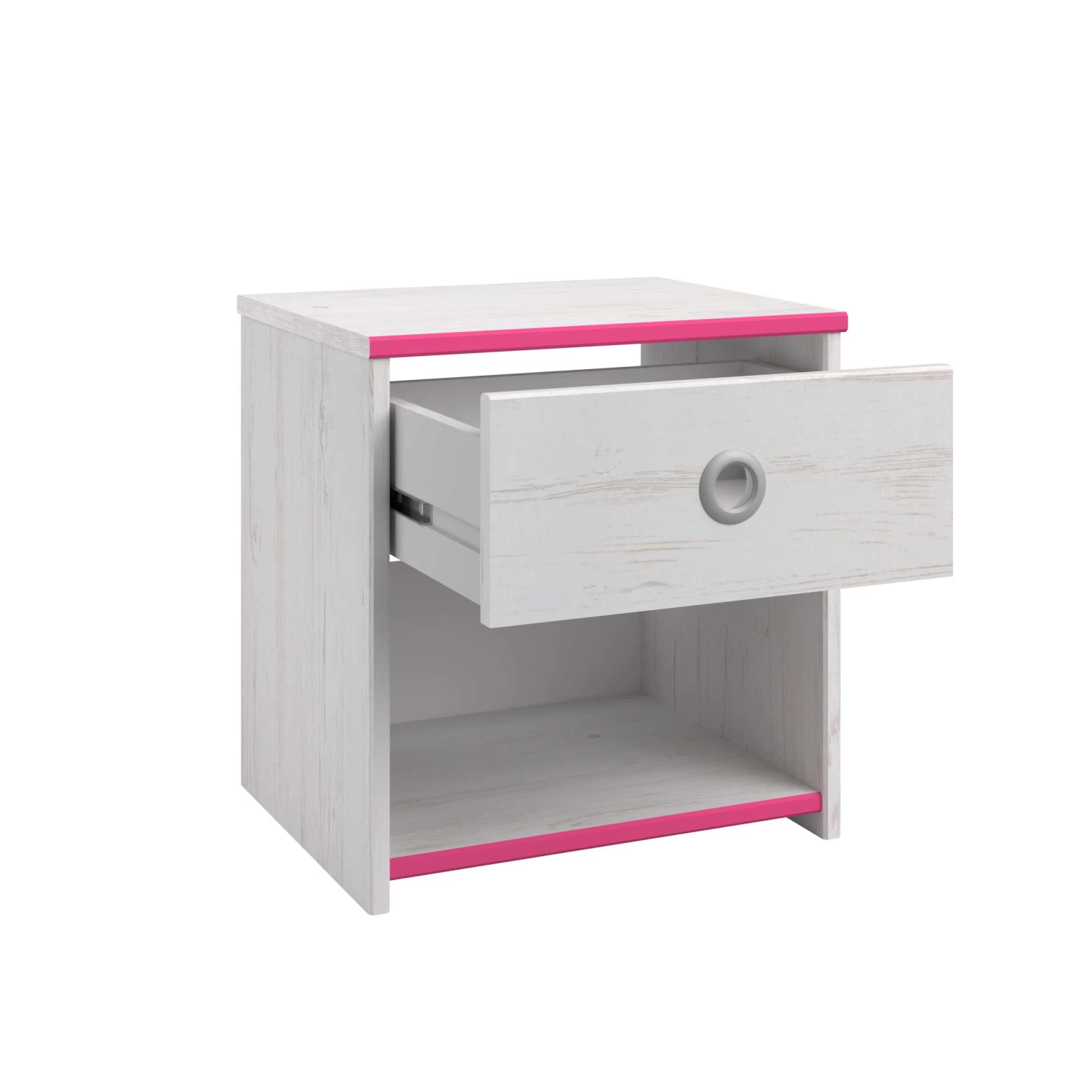 Plaats dit leuke nachtkastje naast het Smoozy kajuitbed! Het nachtkastje heeft een lade met een origineel rond handvat in grijs aluminium. Het kastje beschikt ook over een opbergvak voor bijvoorbeeld een leesboek. Â