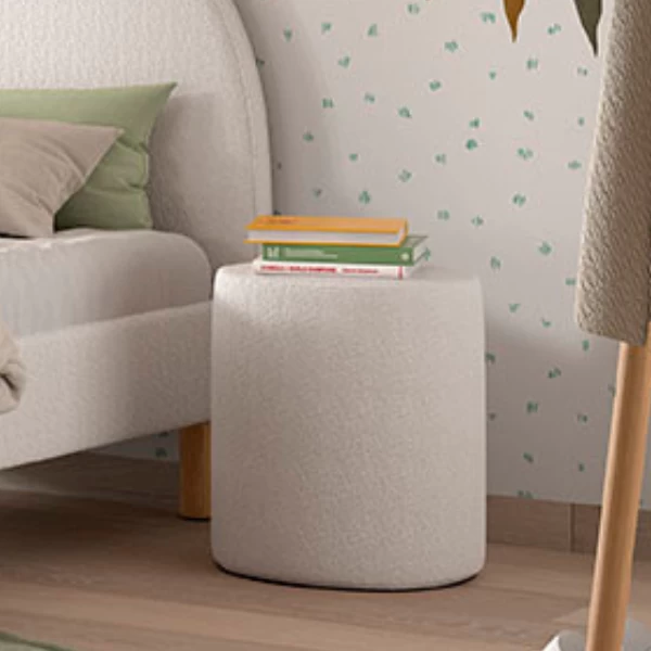 Nachttafeltje / Poef Maeva 41x41cm – Witte Bouclé Stof