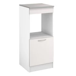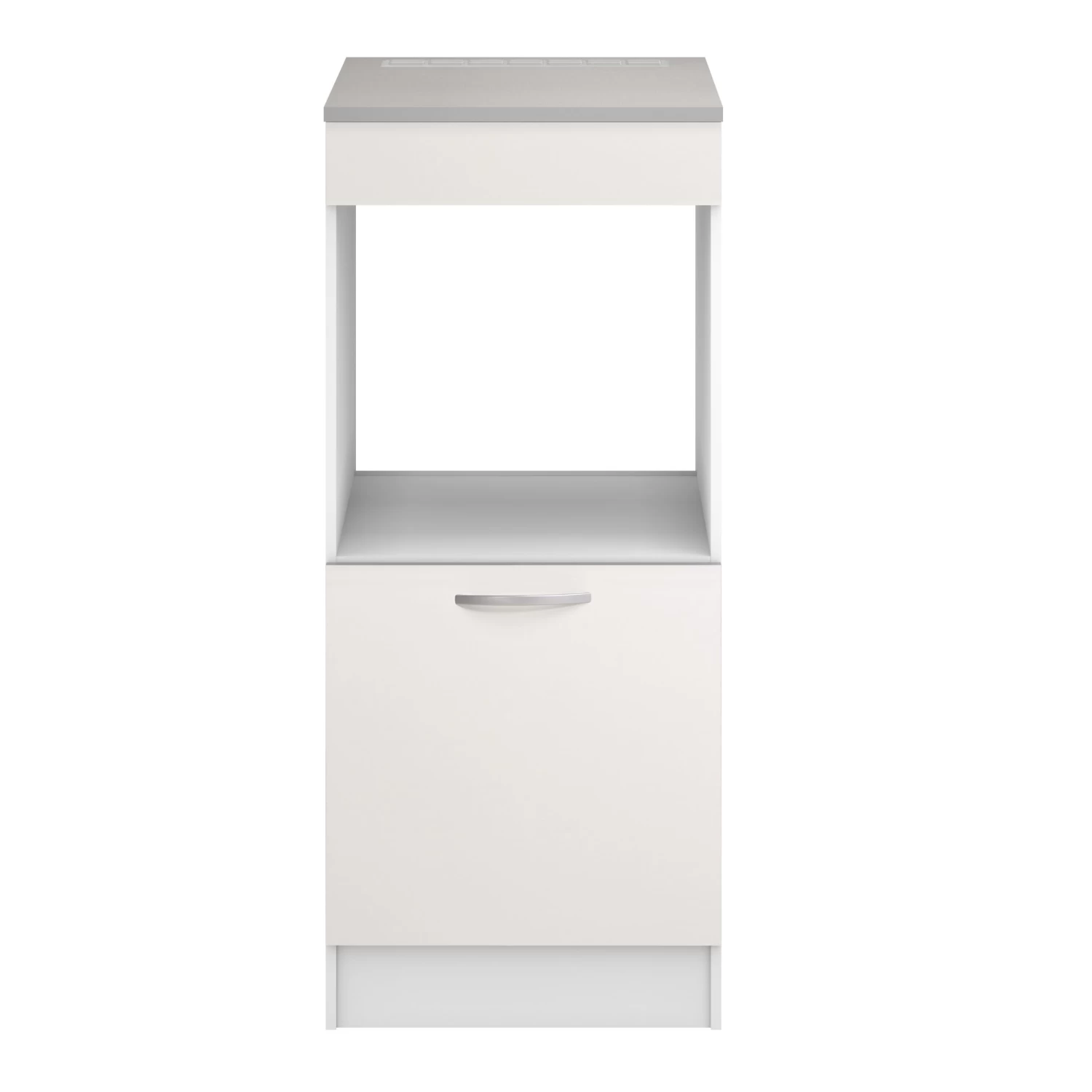 Deze praktische witte onderkast is gemaakt van spaanplaat. De kast bestaat uit een open vak waarin je jouw oven kan integreren en een opbergvak met deur en legplank. Je kan zelf kiezen of het deurtje naar links of rechts opent. Deze onderkast heeft een lengte en een breedte van 60 cm en een hoogte van 141 cm.