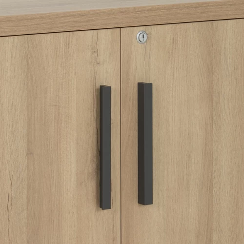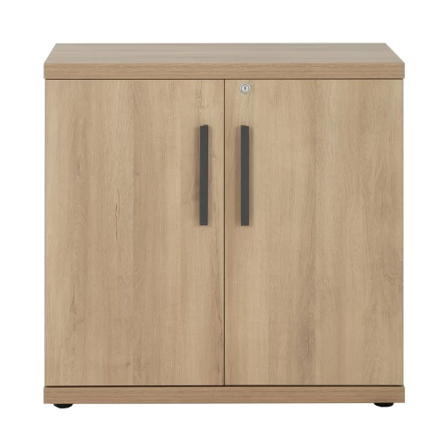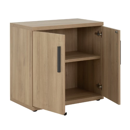 Lage opbergkast Barba heeft twee draaideuren en één legplank die verstelbaar is in hoogte. Het kastje is gemaakt uit spaanplaat en is afgewerkt in eikdecor. Aan de deurtjes hangen praktische antracietkleurige handgrepen. Je hebt ook de mogelijkheid om de opbergkast op slot te doen.Â