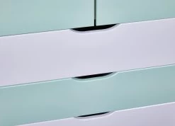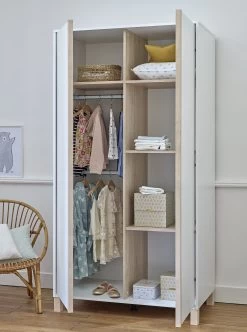 Een tijdloze kinderkamer, daar kan je voor zorgen met de meubelen van de Binno-collectie uit spaanplaat. De combinatie van het decor van gebleekte den met de witte oppervlakken ziet er strak uit, maar is op hetzelfde moment heel gezellig. De indeling van deze opbergkast doet denken aan een boom en haalt zo een stukje natuur in huis. Bovenaan vind je een kledingroede voor de babykleertjes. Daarnaast zijn er vier legplanken voor kleren of voor andere spulletjes zoals boeken, verzorgingsproducten of speelgoed. De kast kan je achter de verzorgingstafel plaatsen voor een optimale opbergruimte.
