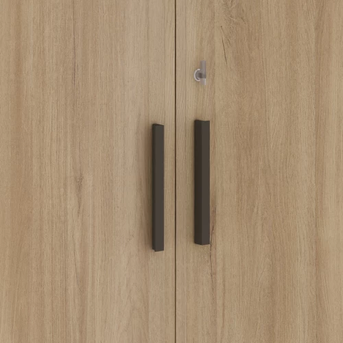 80 cm breed en 194 cm hoog, daar kan je heel wat spullen in opbergen. De Spalo opbergkast kan niet ontbreken wanneer je extra opbergruimte nodig hebt in je hal, slaapkamer of keuken. De kast is gemaakt uit spaanplaat met eikdecor en heeft twee draaideuren. In totaal zijn er vier legplanken, waarvan je van drie zelf de positie kan bepalen. Naast zwarte metalen handgrepen, beschikt de kast ook over een slot.Â