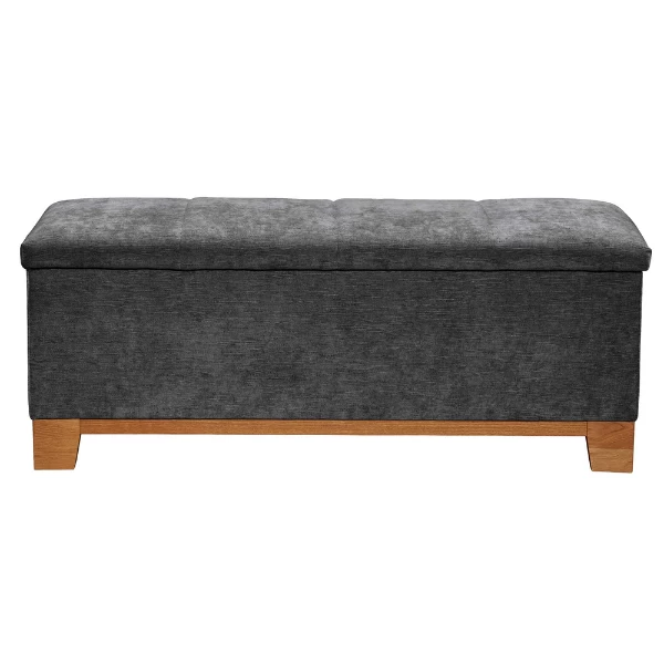 Opbergkoffer Vikram 139x50x58cm uit spaanplaat met bekleding in grafietgrijs polyester.