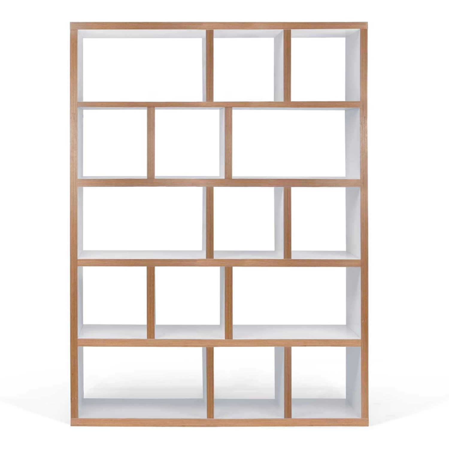 Opbergrek Berkeley kenmerkt zich door zijn atypische vormgeving en vooral zijn geometrische indeling. Dankzij de witte kleur en multiplex randen is dit rek perfect in harmonie met de rest van jouw woonkamer of kantoor. De 5 legplanken zijn onderverdeeld in niches van verschillende groottes en bieden ruim voldoende plaats voor al jouw leesvoer en andere objecten.