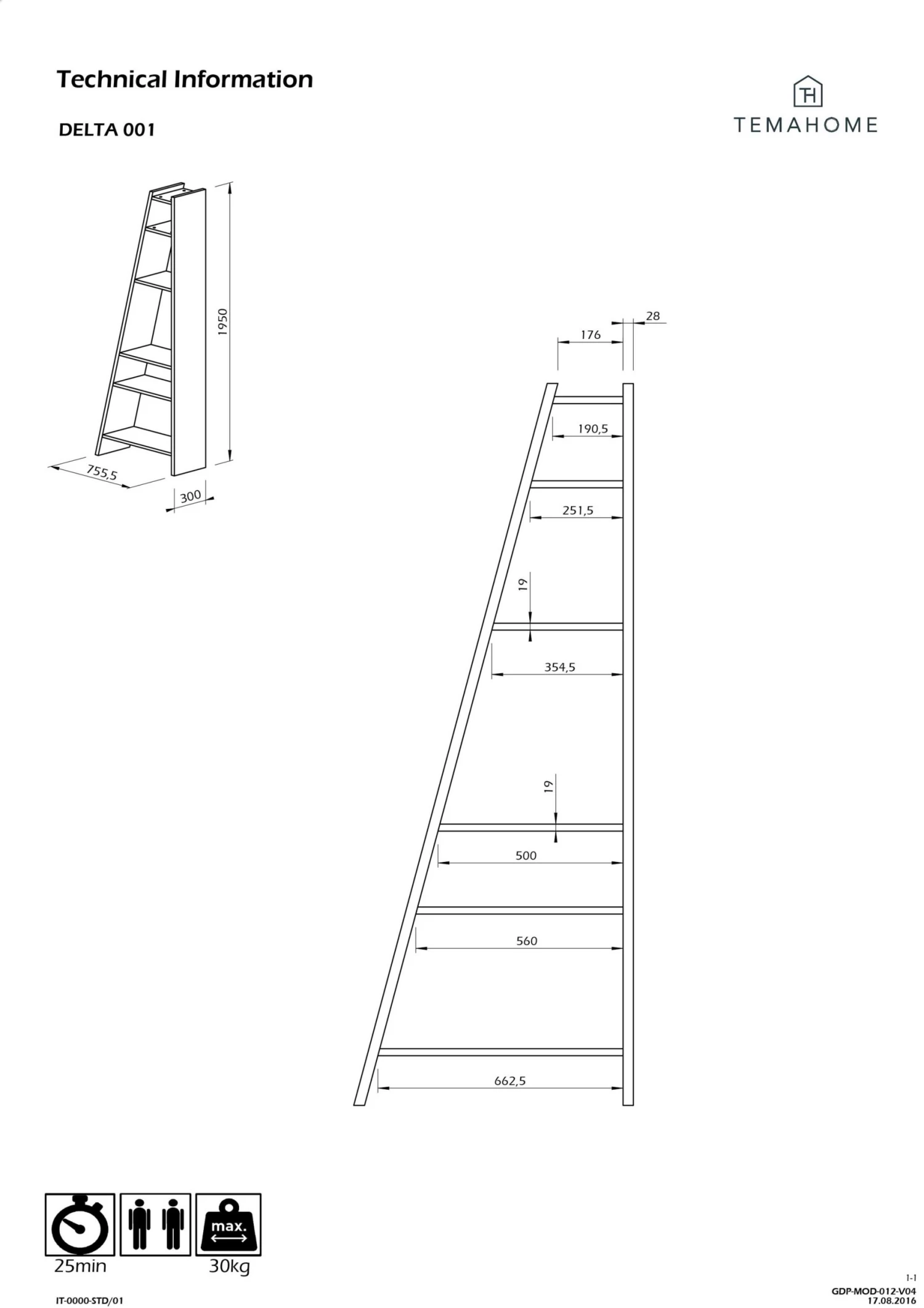 - De smalste legplank is 19 cm breed, de breedste legplank is 66 cm breed