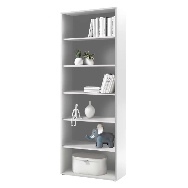 Richt je complete kantoor in met de meubelen van de Sonra-reeks. De kasten zijn gemaakt uit lichtgrijze spaanplaat, wat ervoor zorgt dat de ruimte licht en toch georganiseerd blijft. Dit rek is 80 cm lang en 216 cm hoog. In de zes open vakken kan je spullen opbergen die je dagelijks nodig hebt, eventueel gecombineerd met decoratie.Â