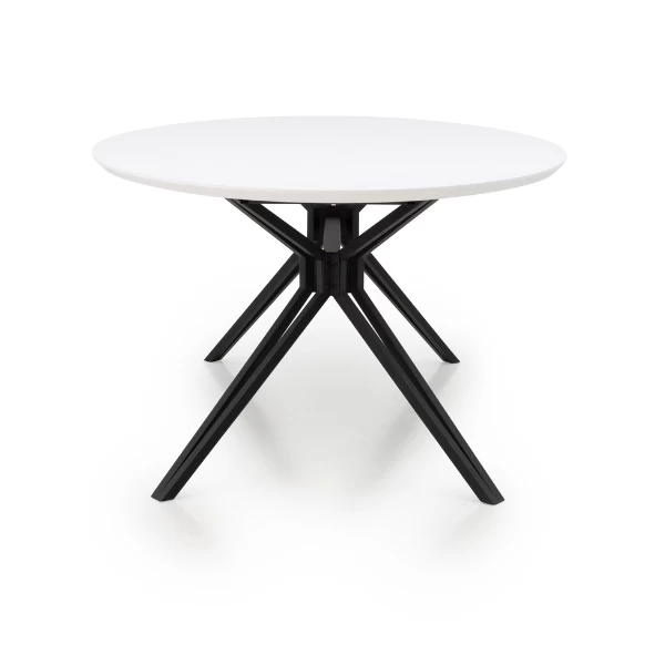 Ovale eettafel Imagine is gemaakt uit wit waterbestendig HPL-laminaat en heeft zwartgelakte metalen poten.