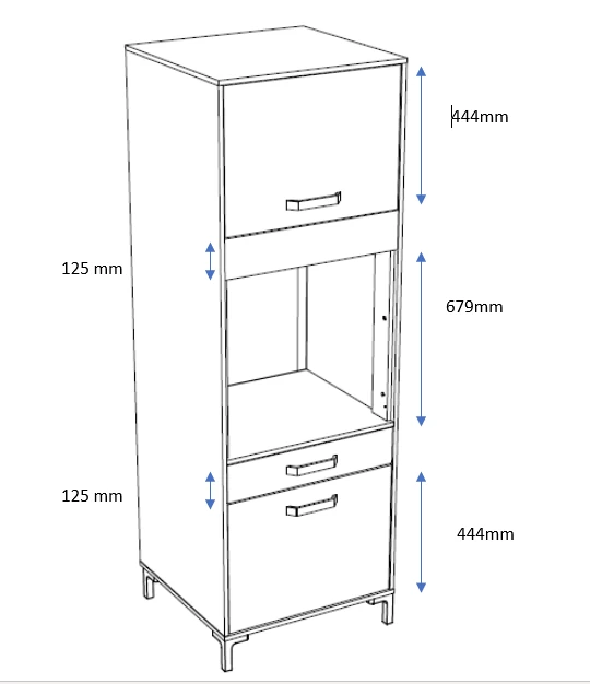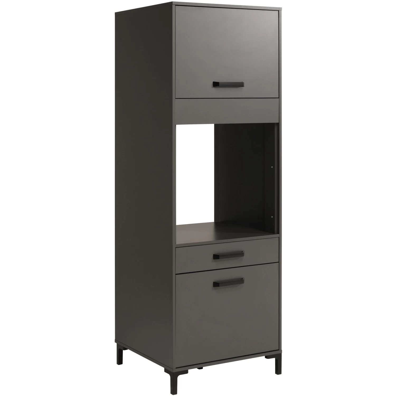Deze handige ovenkast wordt al gauw een onmisbaar element in jouw keuken. De kast bestaat uit een deur boven- en onderaan, een lade en een open vak in het midden waarin je jouw oven kan integreren.