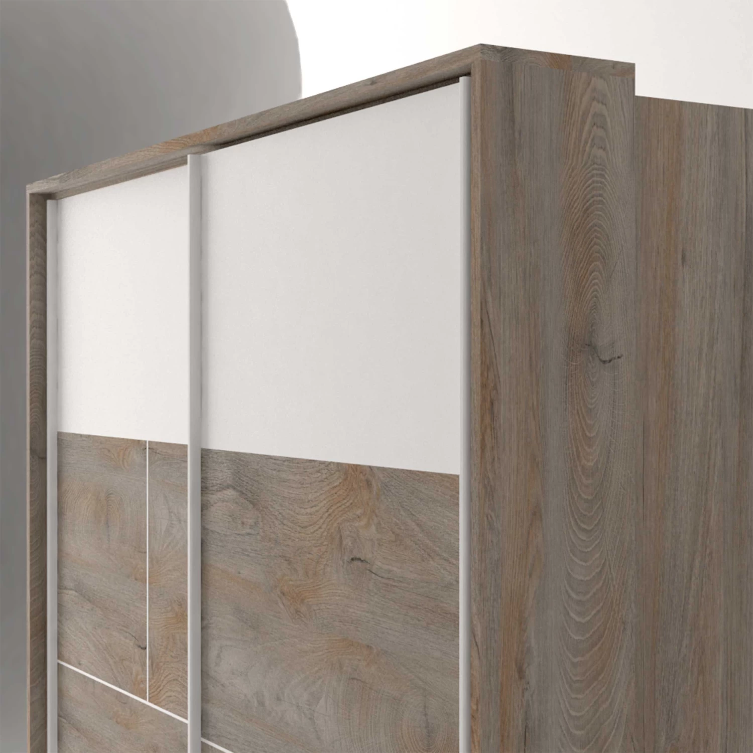 Creëer een moderne omgeving dankzij de meubelen van de Paxton-collectie. Deze meubelen zijn gemaakt uit spaanplaat met een gelakte afwerking in hoogglans wit en grijze eikdecor. De lichte kleuren bezorgen een rustige sfeer in de kamer.Â