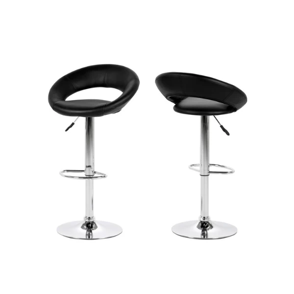 Plump Barkruk: PU Zwart, Chromen Onderstel, Gas Lift En Draaibaar