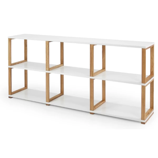 Rek Arte is een unicum op het vlak van stabiliteit. De planken worden namelijk enkel ondersteund door de eikenhouten zijkanten en poten. Er komen dus geen dwarsbalken aan te pas. Door de eikenhouten elementen is dit rek niet alleen stevig, maar ook tijdloos. Dit rek heeft 3 witte planken en 6 vakken. Rek Arte kan ook gebruikt worden als roomdivider en is verkrijgbaar in verschillende formaten.