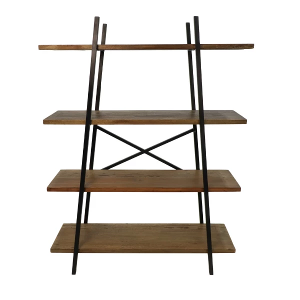 Rek Braydan 160x42x120cm uit metaal en gerecycleerd javahout. Met vier legplanken.