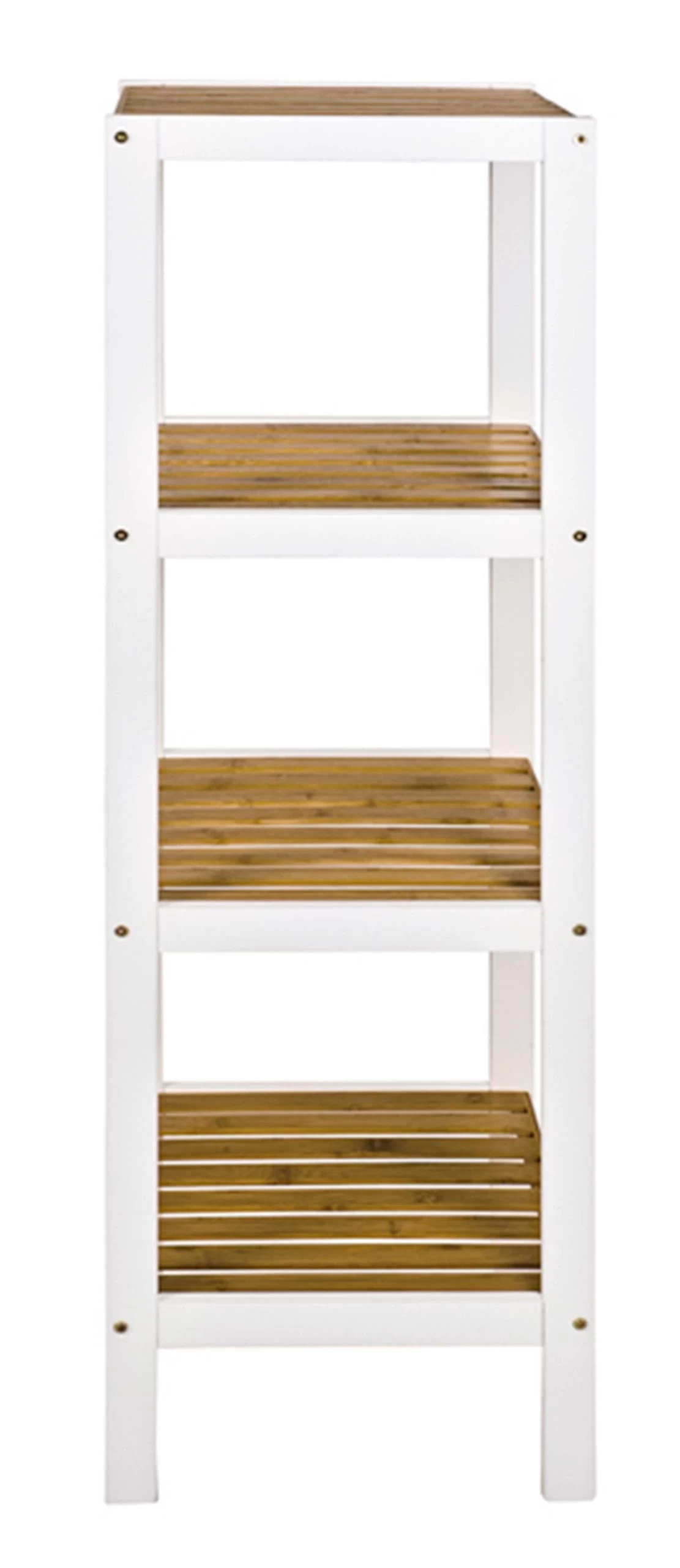 Het Joah-rek is een praktische rek dat gemakkelijk in verschillende ruimtes past. Je kan het rek zowel in de hal als in de woonkamer gebruiken, maar het Joah-rek is ook ideaal om in de badkamer te plaatsen en er handdoeken in opbergen. Het rek is geïnspireerd door de Scandinavische stijl dankzij de legplanken uit natuurlijke bamboe en frame uit witte MDF.