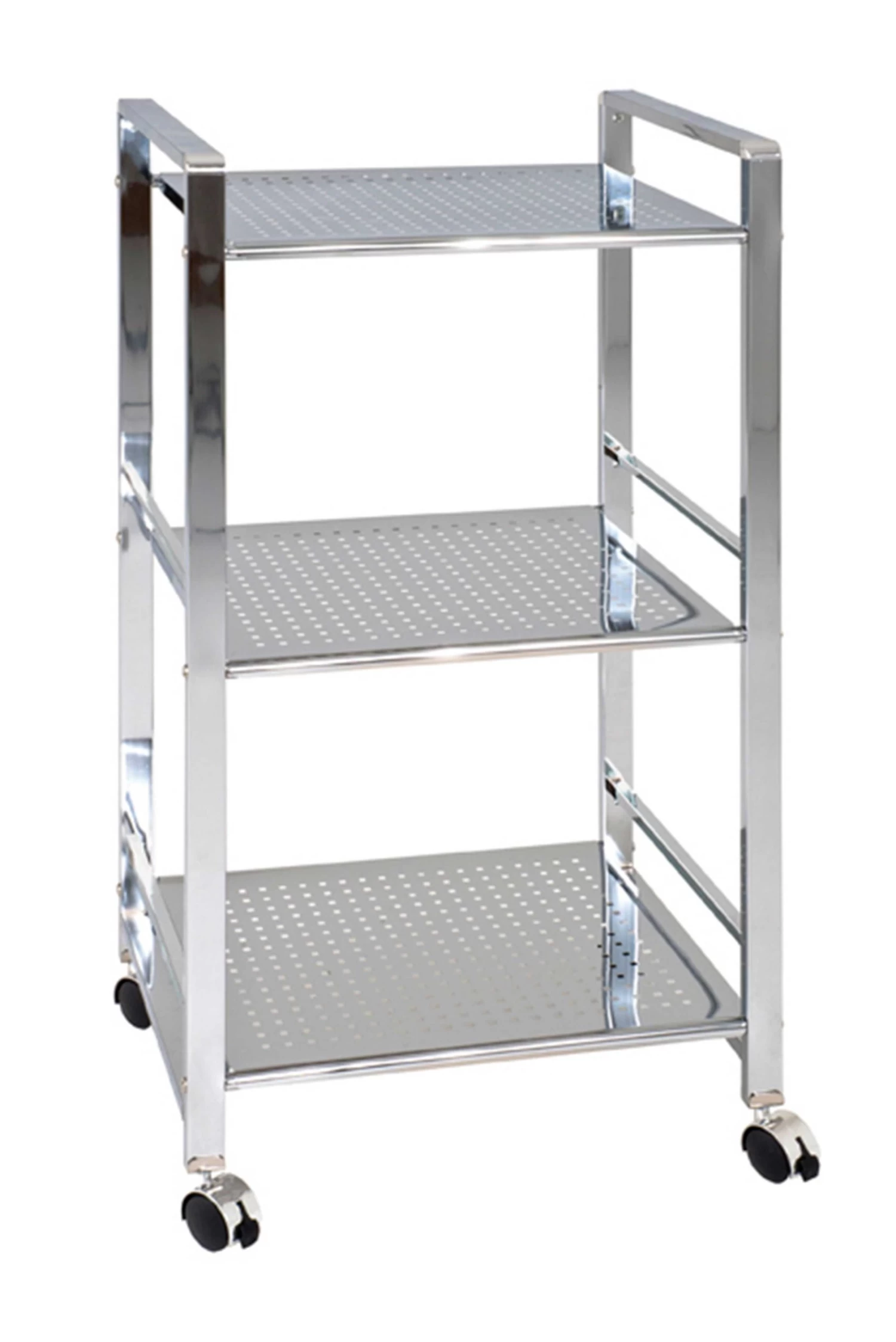 Rek op wielen Burak, gemaakt uit metaal in het grijs.