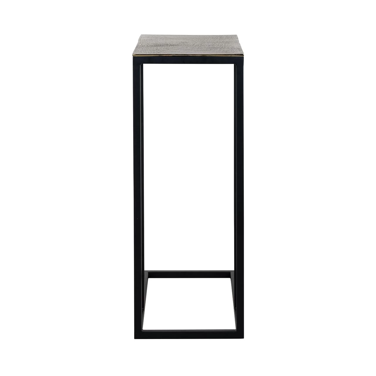 Bijzettafeltje Cadis, gemaakt uit champagnekleurig aluminium met een frame in zwart ijzer.Â