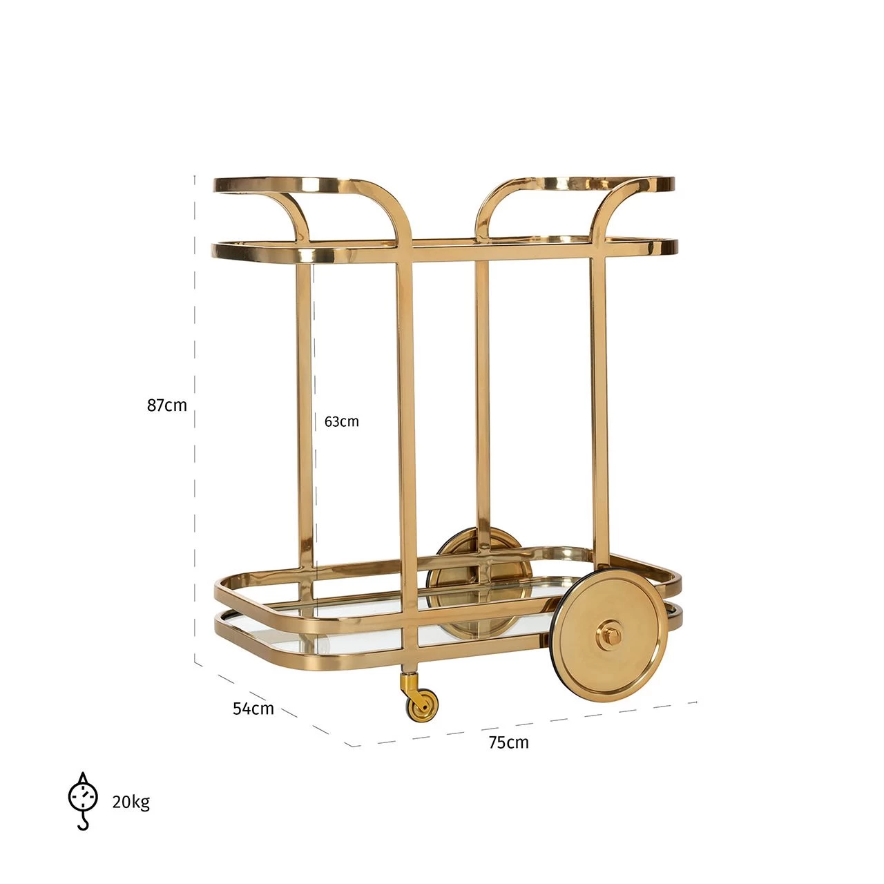 te zetten. De chique trolley is gemaakt uit een onderstel en wieltjes in goudkleurige