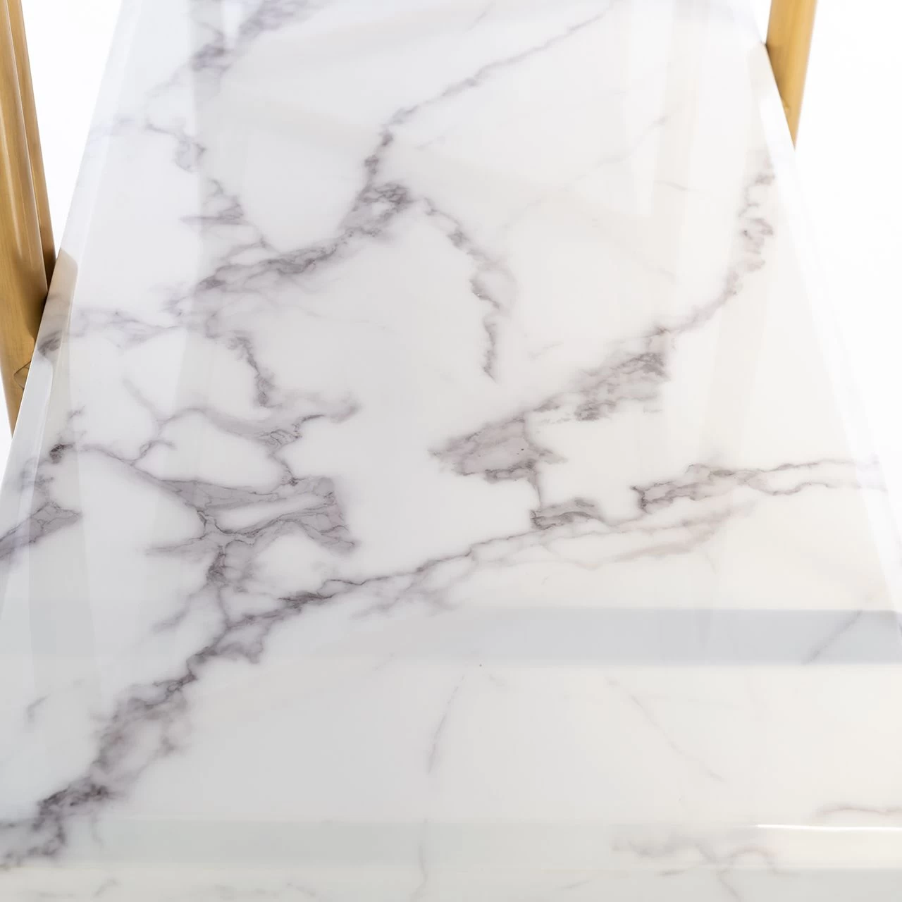 Zoek niet langer naar het perfecte meubel voor al je accessoires en prachtige decoratieartikelen, want deze kast beantwoordt vast en zeker aan al jouw eisen! Het magnifieke gouden frame in roestvrij staal zorgt voor de noodzakelijke stevigheid, terwijl de drie ruime legplanken in wit marmer een stijlvolle, maar praktische oplossing bieden om je spullen op uit te stallen. Je kan deze kast in zowat elke ruimte en interieur inpassen, op voorwaarde dat je er genoeg plaats voor reserveert. De aankoop van deze kast wordt een gouden zet in jouw leven! Eveneens beschikbaar in zwart.Â